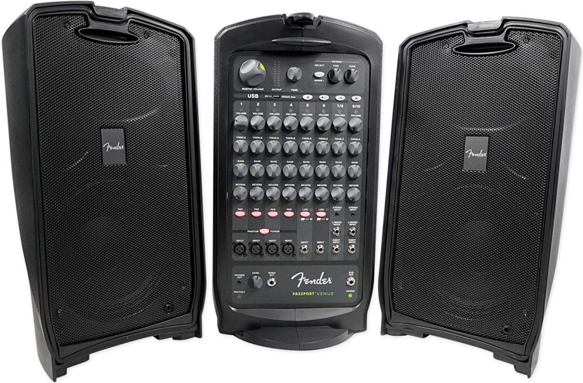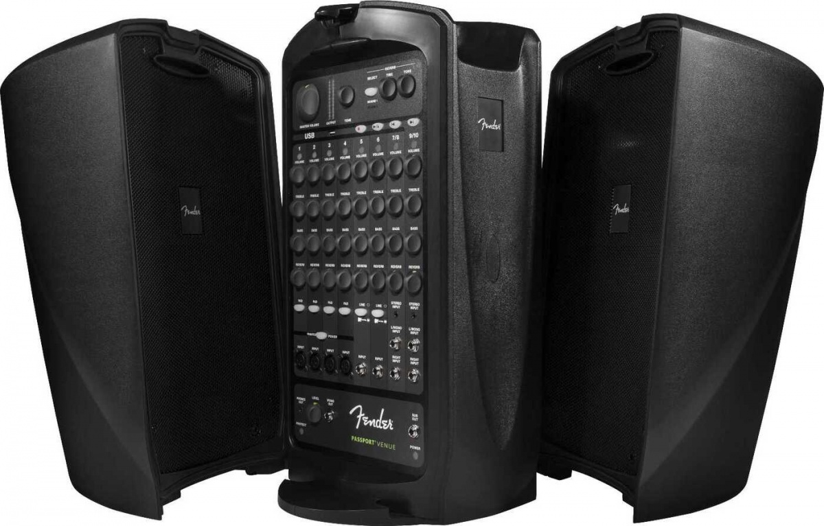 - Комплектация: две пассивных широкополосных акустических системы, усилитель мощности класса D, микшерный пульт с 10 каналами и комплект кабелей коммутации (2 акустических кабеля, 1 сетевой кабель)
