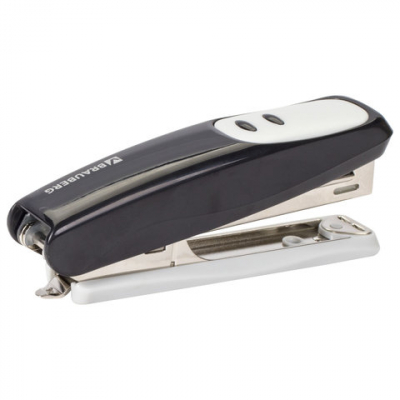Степлер №10 BRAUBERG "Germanium", до 12 листов, с антистеплером, черный, ГАРАНТИЯ 5 ЛЕТ, 226572