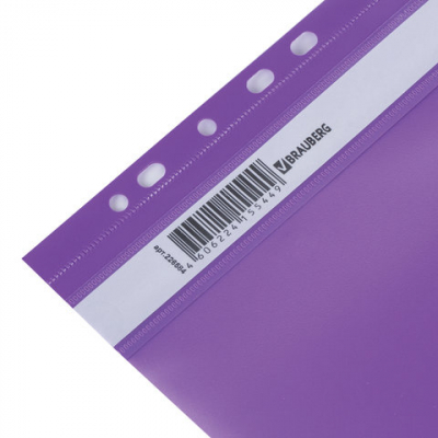 Скоросшиватель пластиковый с перфорацией BRAUBERG, А4, 140/180 мкм, фиолетовый, 226584