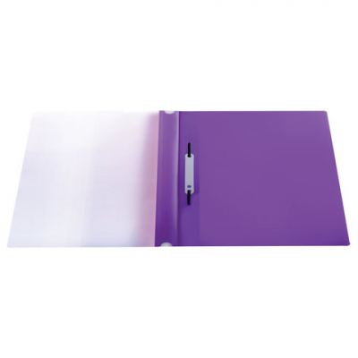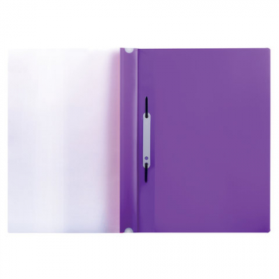 Фиксирует до 100 листов формата А4. Толщина пластика верхнего листа составляет 140 мкм, а нижнего - 180 мкм. Предельно простой механизм подшивки: металлические усики и пластиковая планка для надежной фиксации документов. Мультиперфорация по краю обложки позволяет подшивать изделие в папки с любым механизмом. Скоросшиватель изготовлен из качественного полипропилена. Прозрачный верхний лист позволяет определить содержимое, не открывая скоросшиватель, который к тому же снабжен сменным пластиковым корешком, что дает возможность структурировать информацию. Благодаря фактуре "песок" и яркому фиолетовому цвету обложки папка никогда не затеряется на полке.