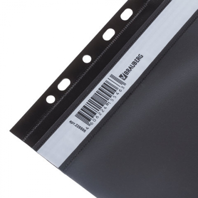 Скоросшиватель пластиковый с перфорацией BRAUBERG, А4, 140/180 мкм, черный, 226586