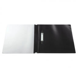 Фиксирует до 100 листов формата А4. Толщина пластика верхнего листа составляет 140 мкм, а нижнего - 180 мкм. Предельно простой механизм подшивки: металлические усики и пластиковая планка для надежной фиксации документов. Мультиперфорация по краю обложки позволяет подшивать изделие в папки с любым механизмом. Скоросшиватель изготовлен из качественного полипропилена. Прозрачный верхний лист позволяет определить содержимое, не открывая скоросшиватель, который к тому же снабжен сменным пластиковым корешком, что дает возможность структурировать информацию. Благодаря фактуре "песок" и строгому черному цвету обложки папка никогда не затеряется на полке.