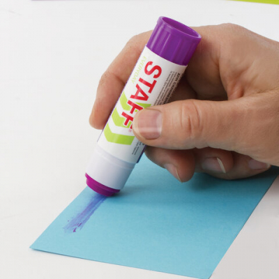 Оптимальный объем - 16 г. При склеивании цветной пигмент исчезает со склеиваемой поверхности, не оставляя следов. Обесцвечивающийся индикатор позволяет на некоторое время сделать видимой клеевой слой для удобства. Безопасен для здоровья, нетоксичен. Не деформирует бумагу.