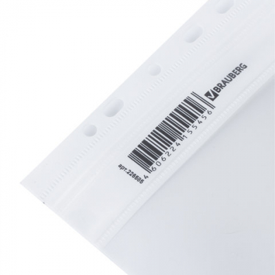 Скоросшиватель пластиковый с перфорацией BRAUBERG, А4, 140/180 мкм, белый, 226585