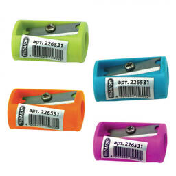 Эргономичный корпус овальной формы выполнен из пластика. Яркие цвета ассорти. Острое стальное лезвие обеспечивает быструю и легкую заточку. Размер - 26х20х14 мм.