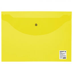 Папка-конверт с кнопкой STAFF, А4, до 100 листов, прозрачная, желтая, 0,12 мм, 226031