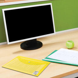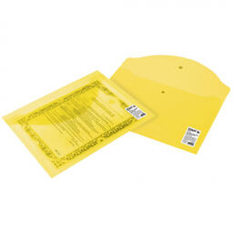 Изготовлена из прозрачного пластика желтого цвета толщиной 120 мкм. Папка-конверт с гладкой фактурой формата А4 закрывается на защелку-кнопку, что делает удобным частое использование и обеспечивает быстрый доступ к ее содержимому. Папка способна вместить до 100 листов стандартной плотности.