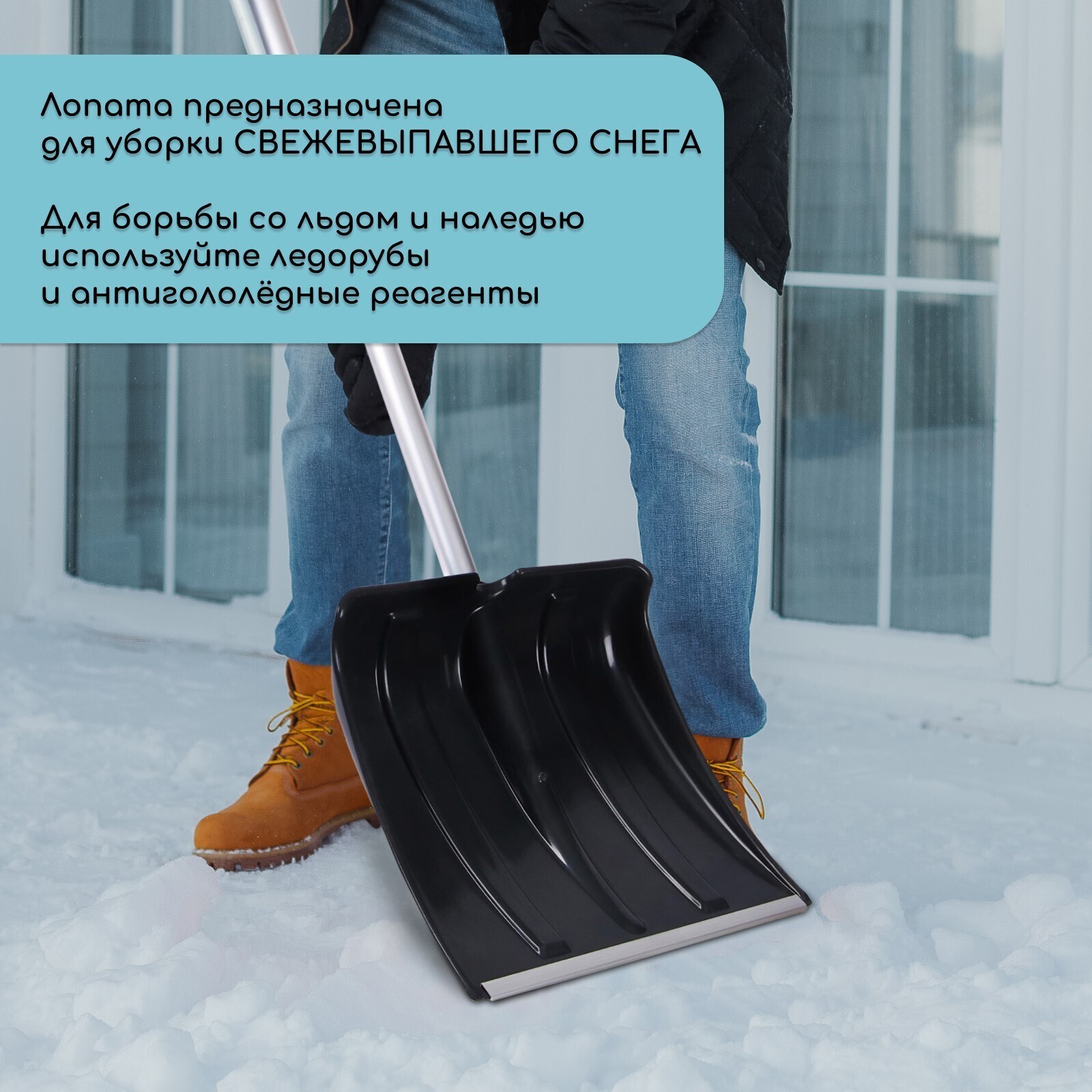 Лопата пластиковая, ковш 380 × 380 мм, морозостойкая, с алюминиевой планкой, алюминиевый черенок, «Снежинка» 2845986