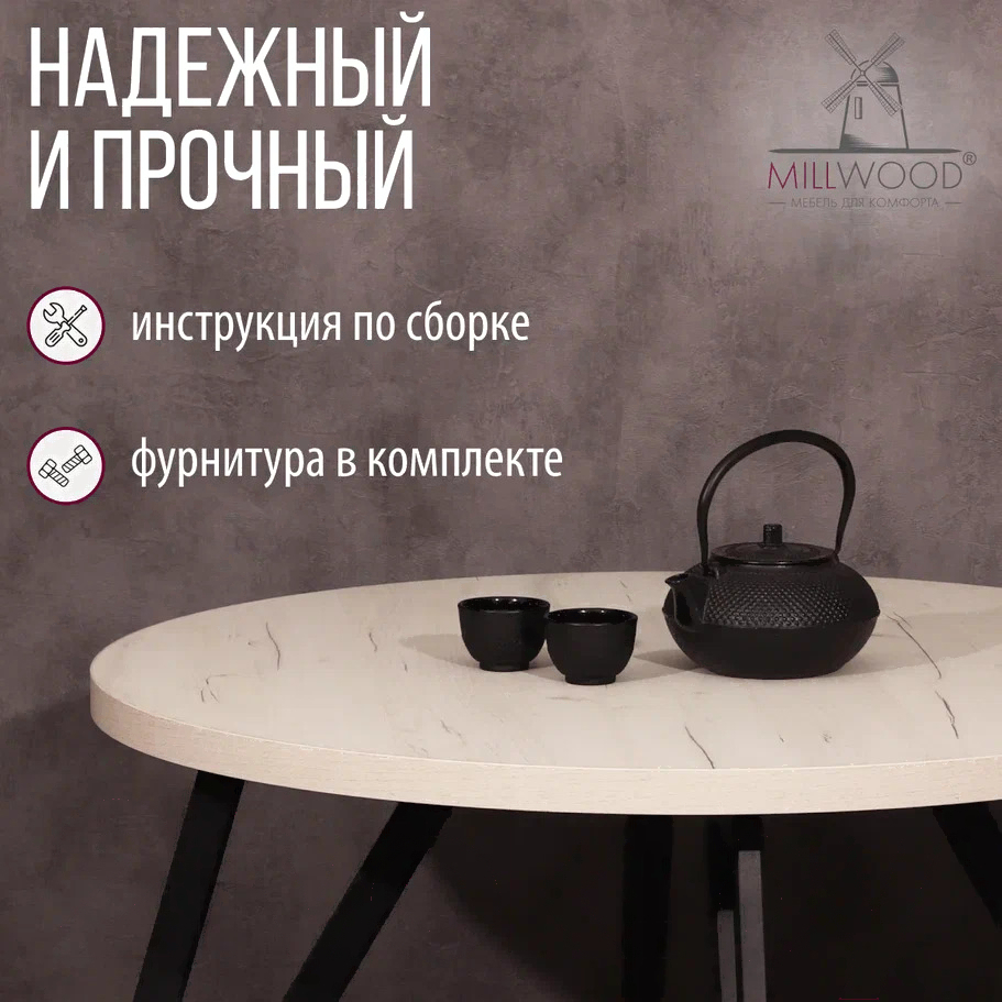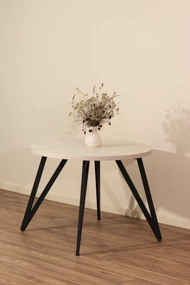 Обеденный стол Millwood Женева 2 Л D100 / 100x100x75 (дуб белый Craft/металл черный)