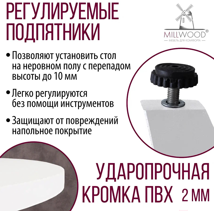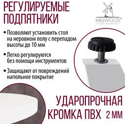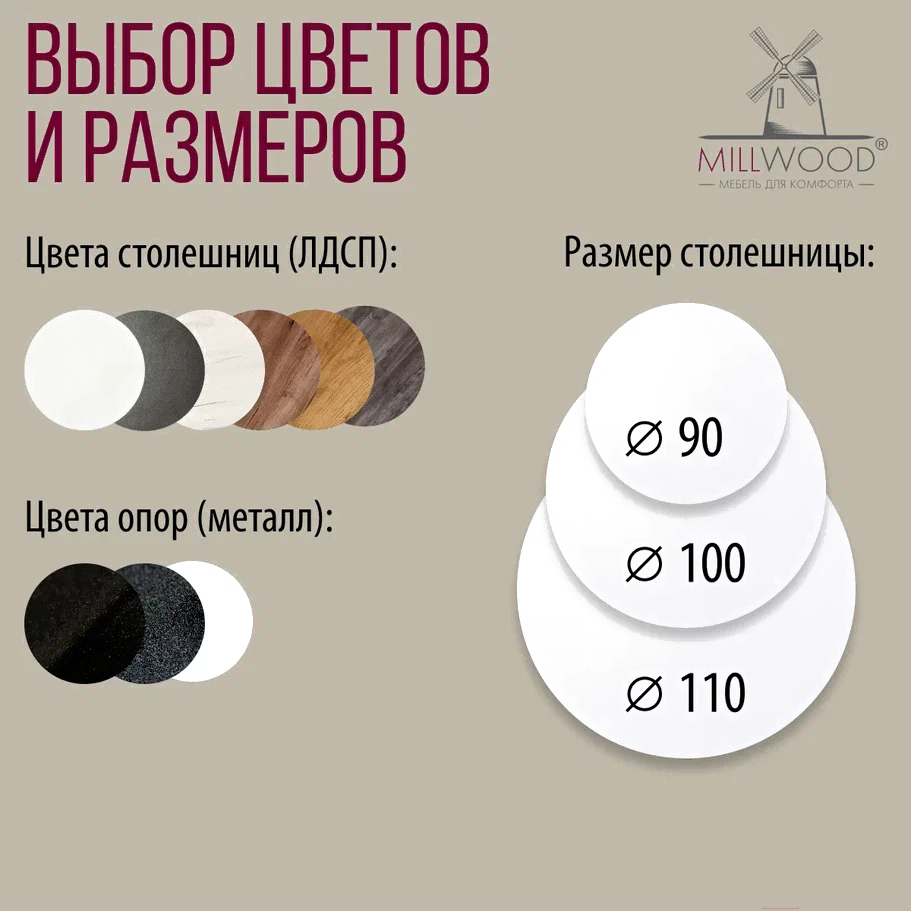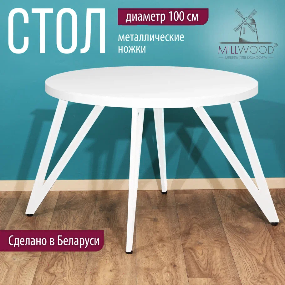 Обеденный стол Millwood Женева 2 Л D100 / 100x100x75 (белый/металл белый)