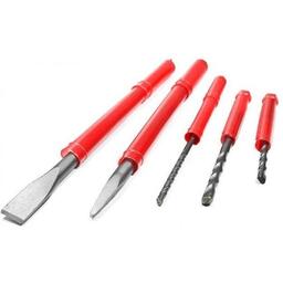 • Приспособления Перфоратор, чемодан пластиковый, боковая рукоятка, буры, глубиномер, долото, дополнительный быстрозажимной патрон, пика