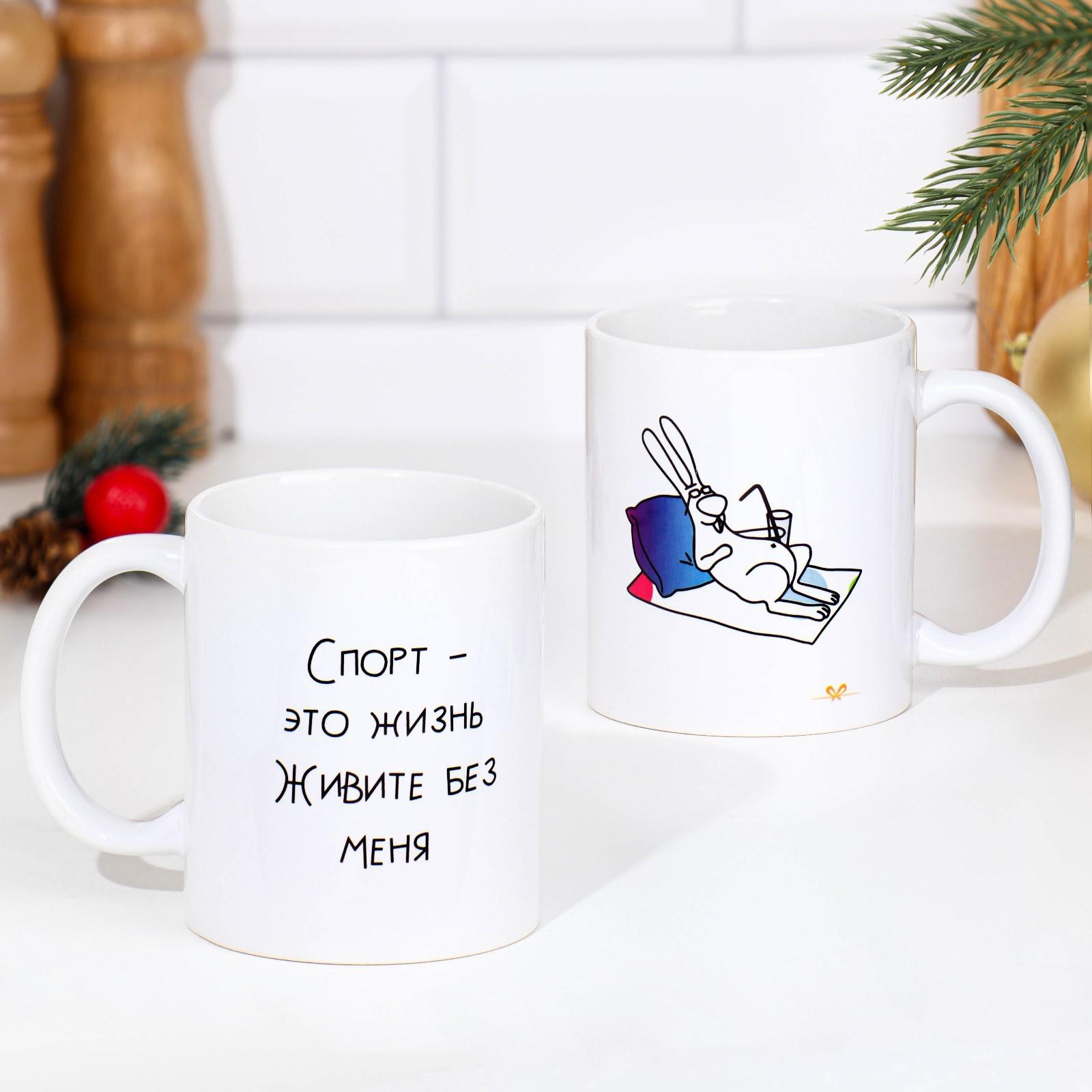 Кружка "Кролик 2023. Спорт - это жизнь", 320 мл, с нанесением 9149820