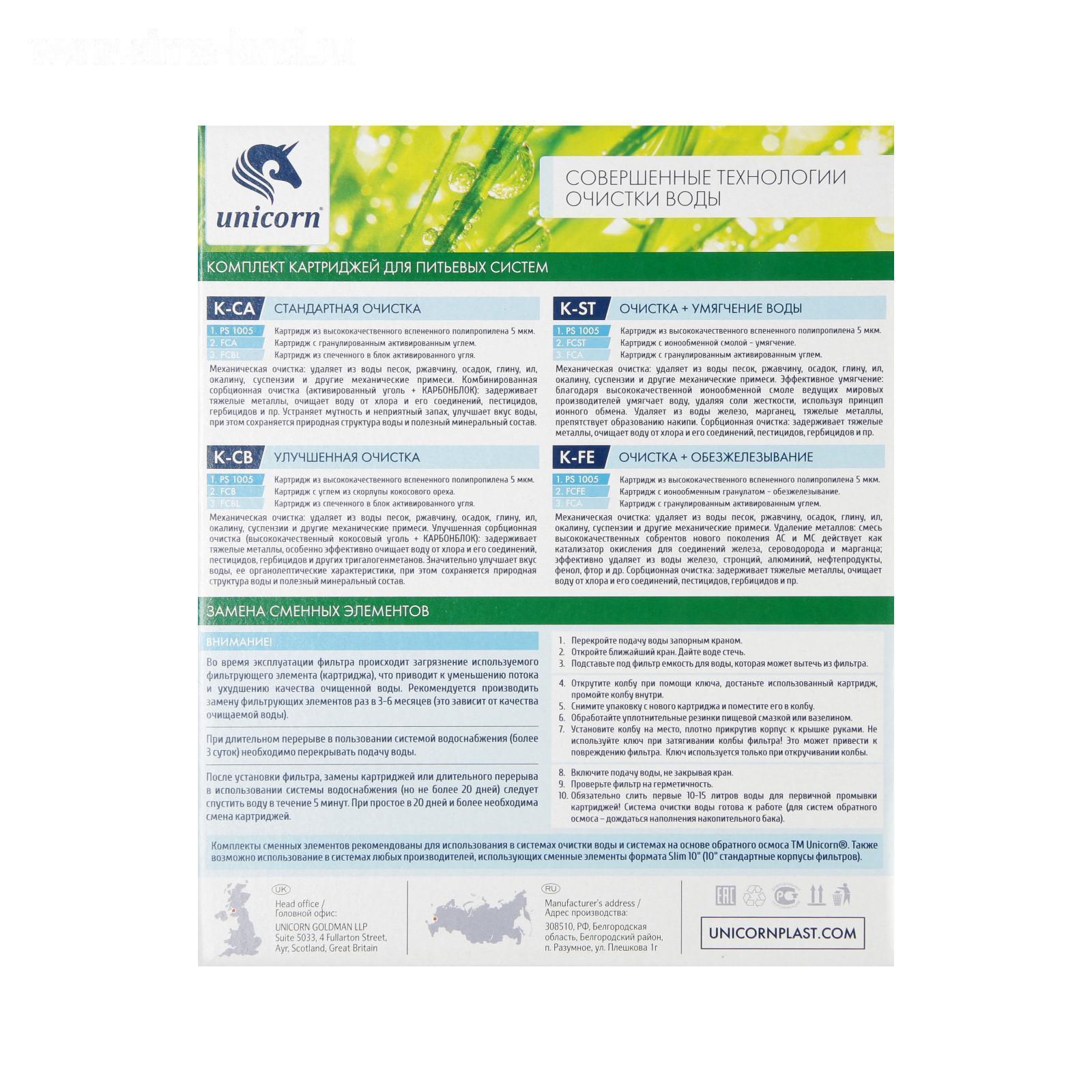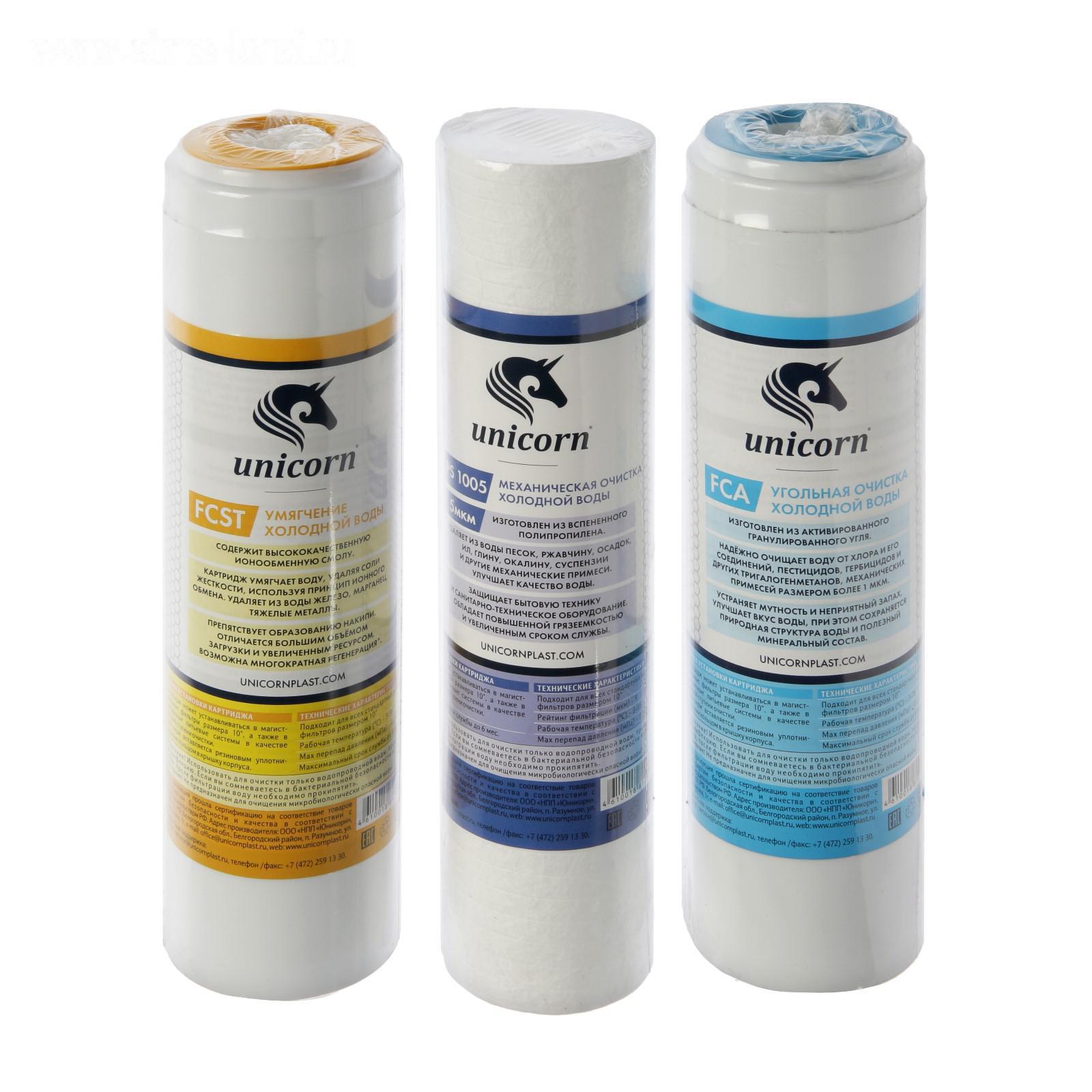 Комплект картриджей Unicorn K-ST, "PS-10. FCST-10. FCA-10", очистка+умягчения воды 5116617
