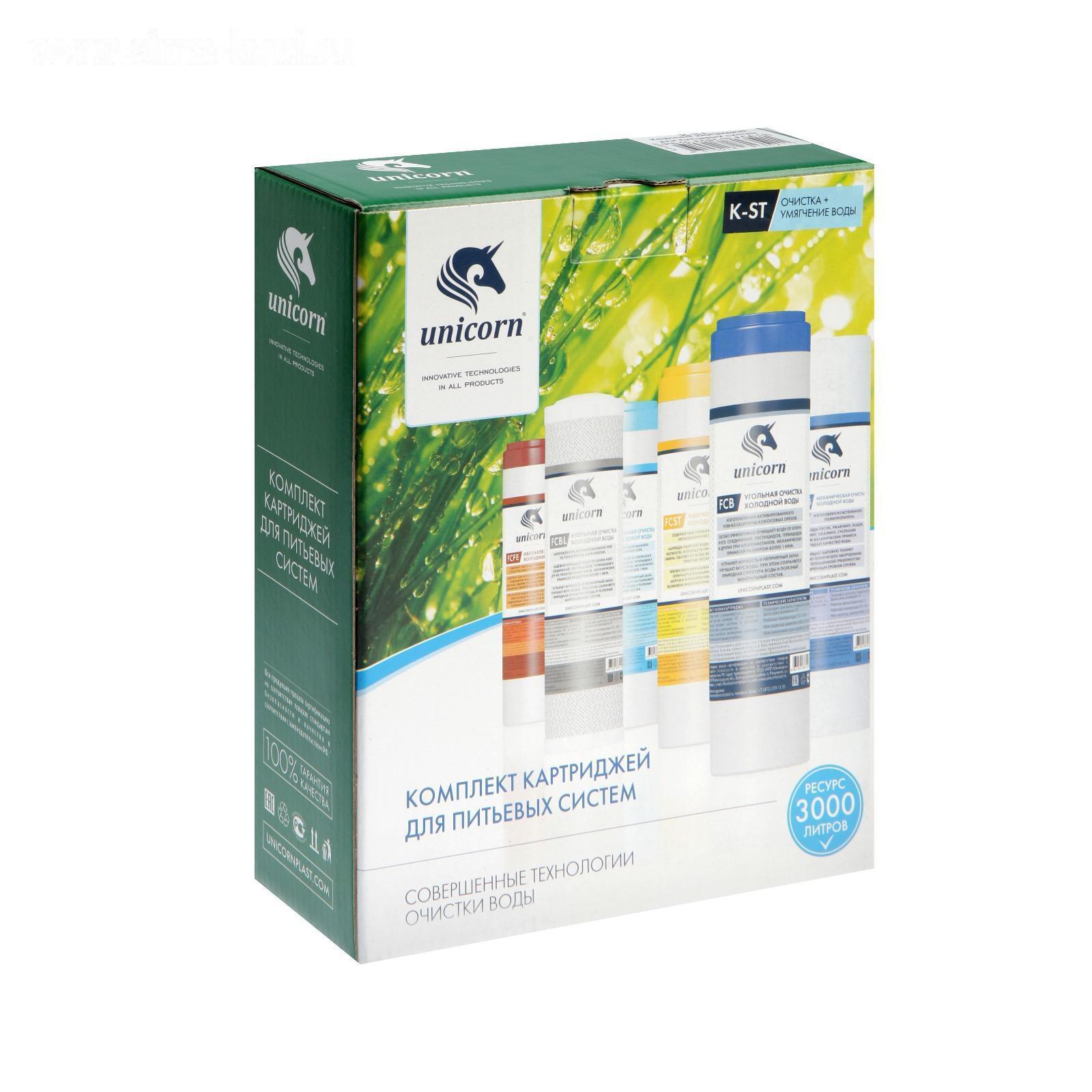 Комплект картриджей для питьевых систем Unicorn "К-ST Умягчение" включает 3 картриджа.