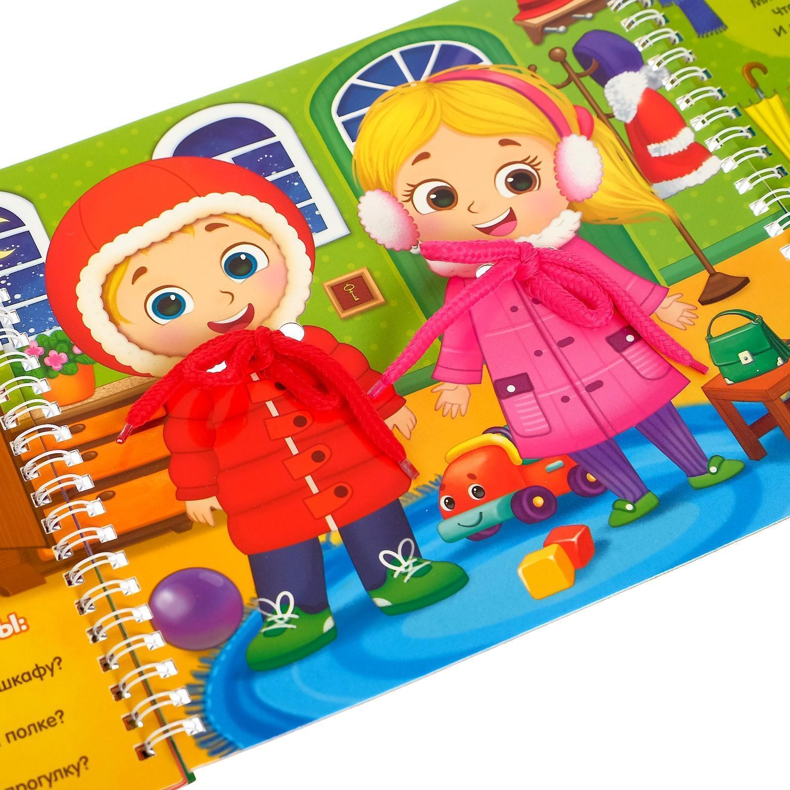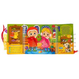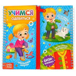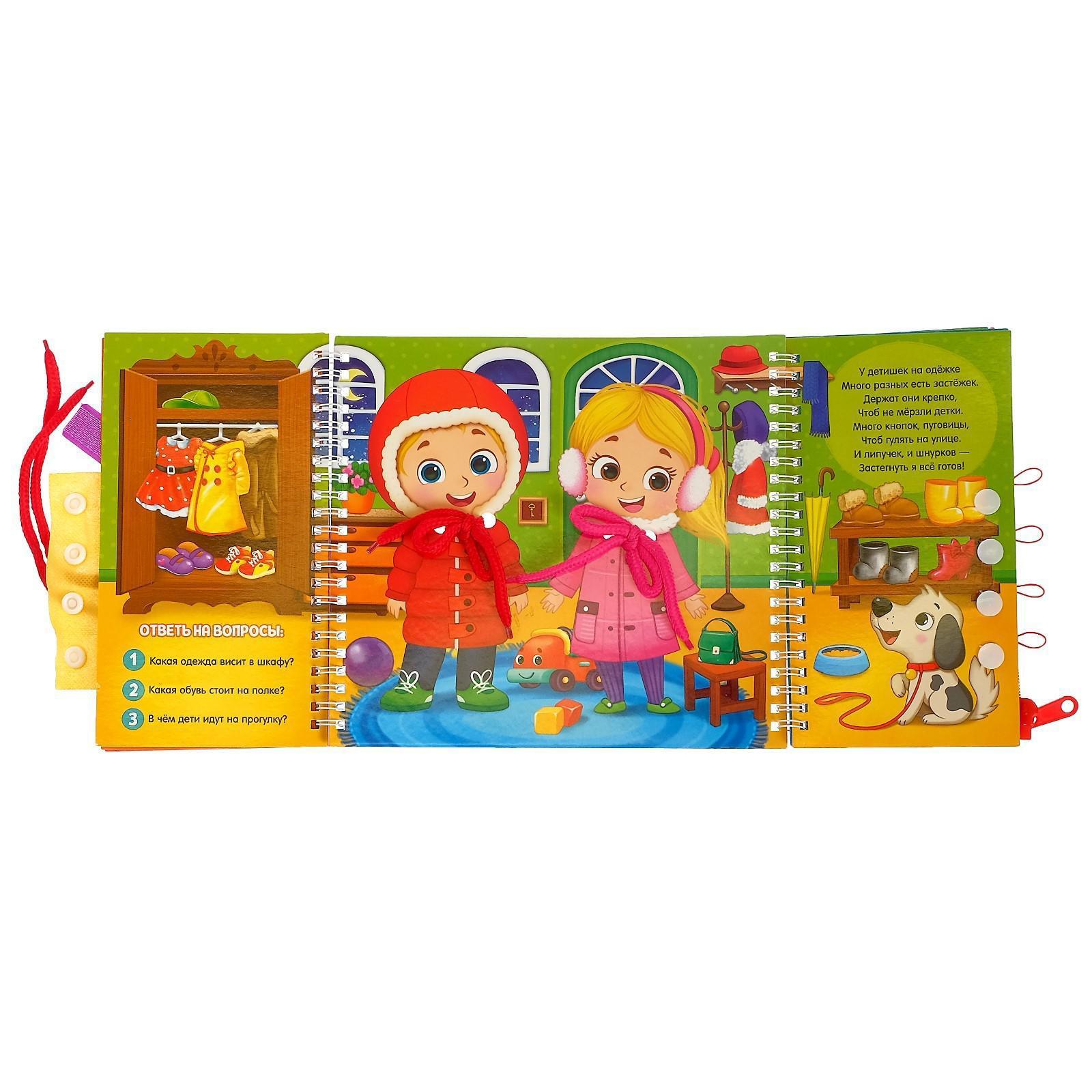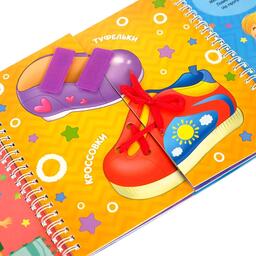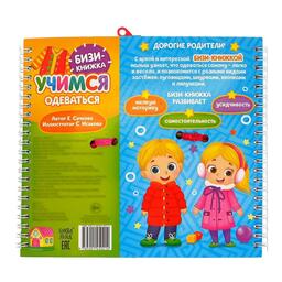 С яркой и интересной бизикнижкой малыш узнает, как одеваются в разное время года и научится застёгивать и расстёгивать пуговицы, шнурки, липучки, кнопки и молнию.