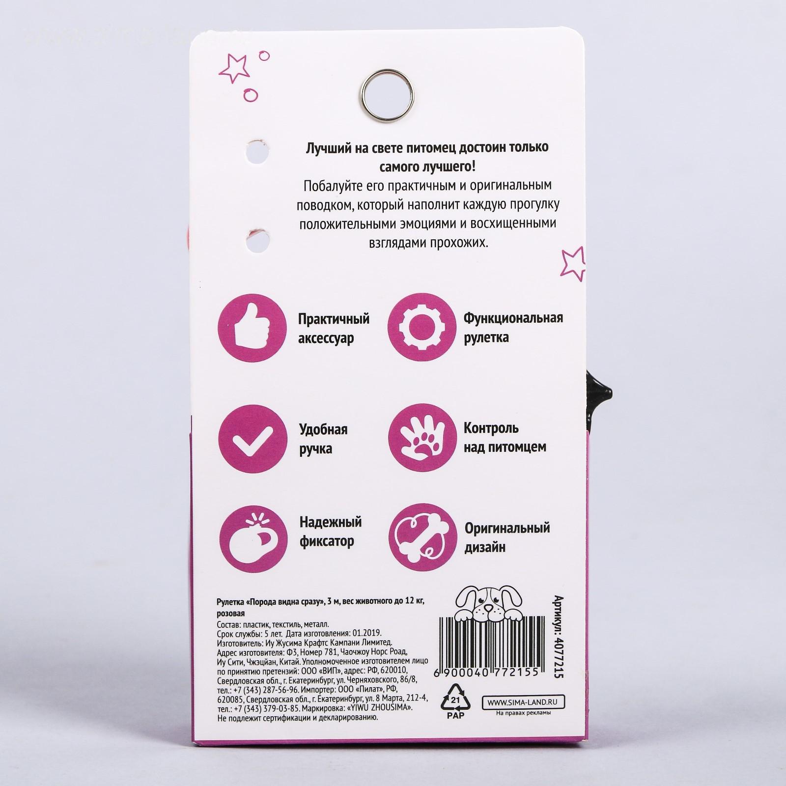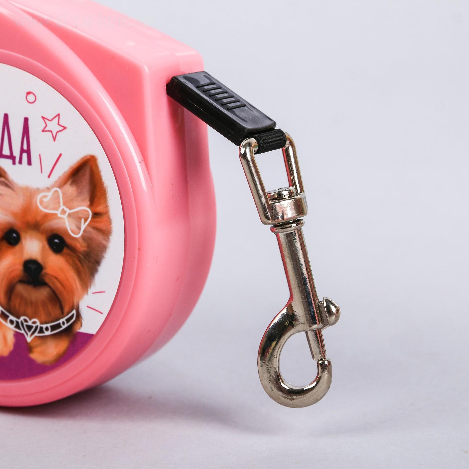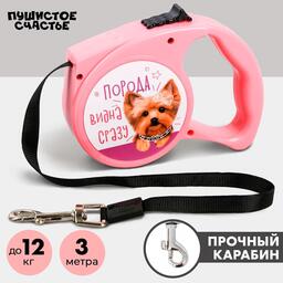 Аксессуар подходит для выгула собак весом до 12 кг, длина поводка 3 метра.