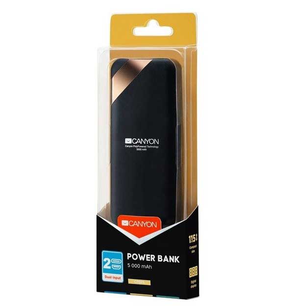 В наличии 990 РВнешний аккумулятор CANYON Power bank 5000mAh черный (CNE-CPBP5B...