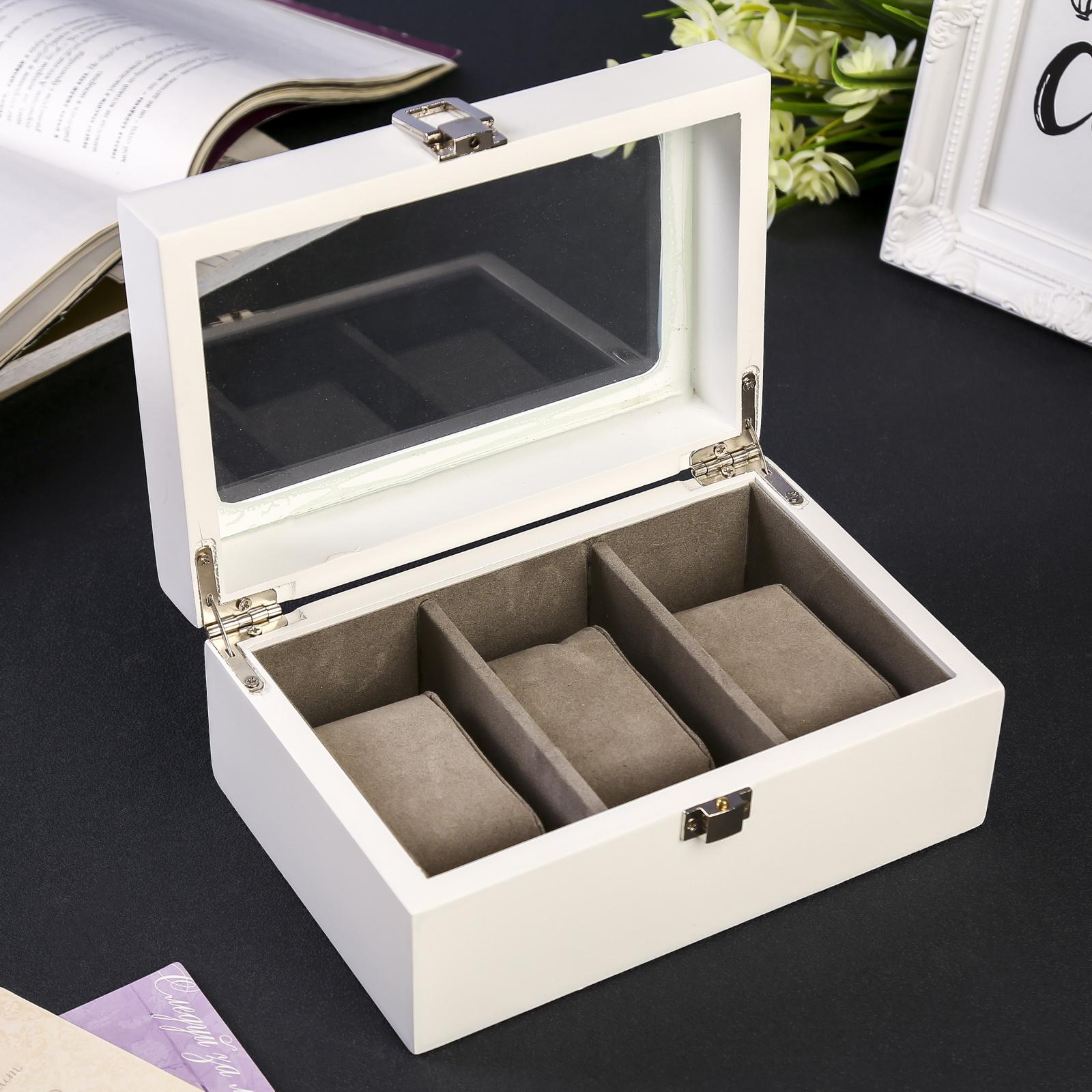 Шкатулка дерево под часы 3 отделения "Стиль" белая 8х12,7х18,2 см 3591852