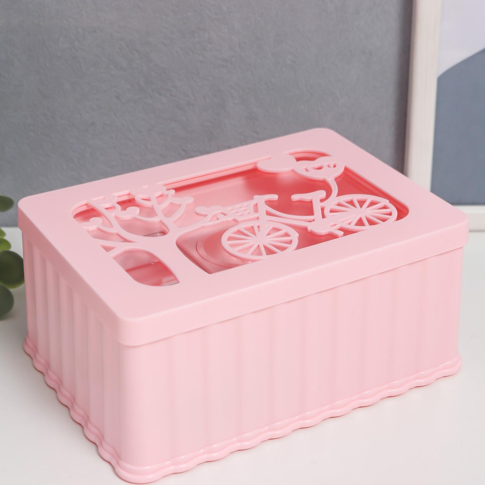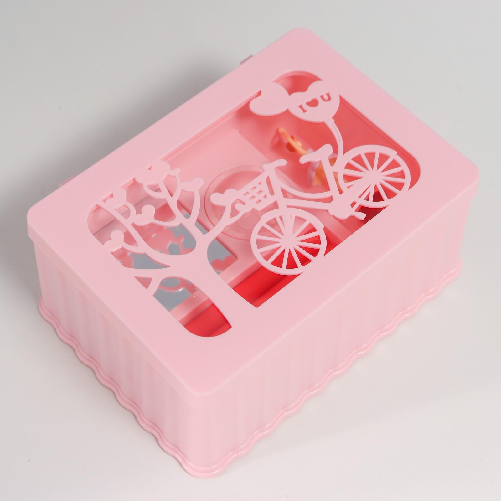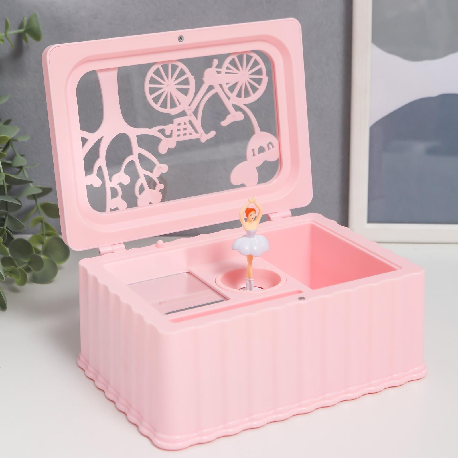 Шкатулка музыкальная механическая "Велопрогулка" розовая 12,5х17,5х8 см 7963820