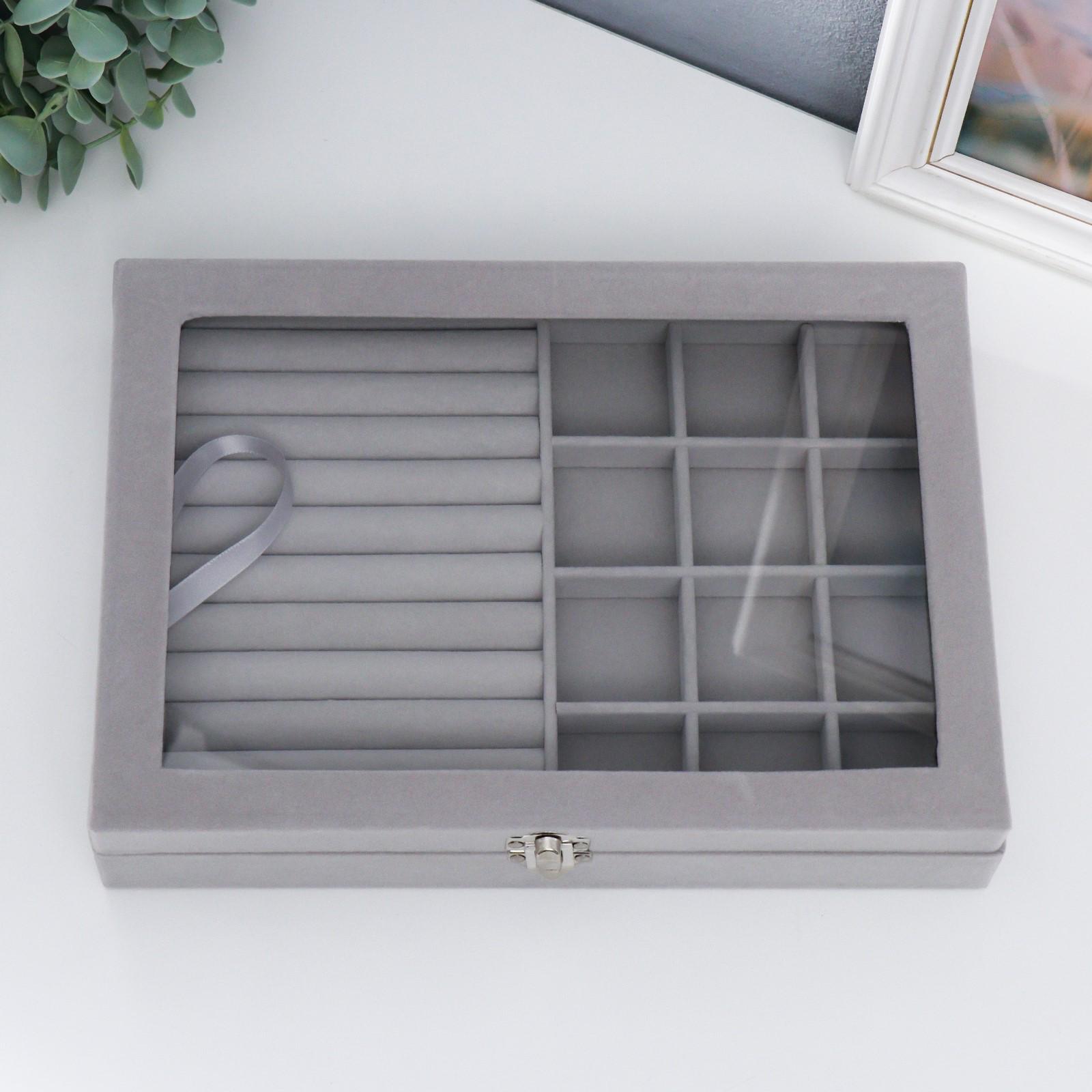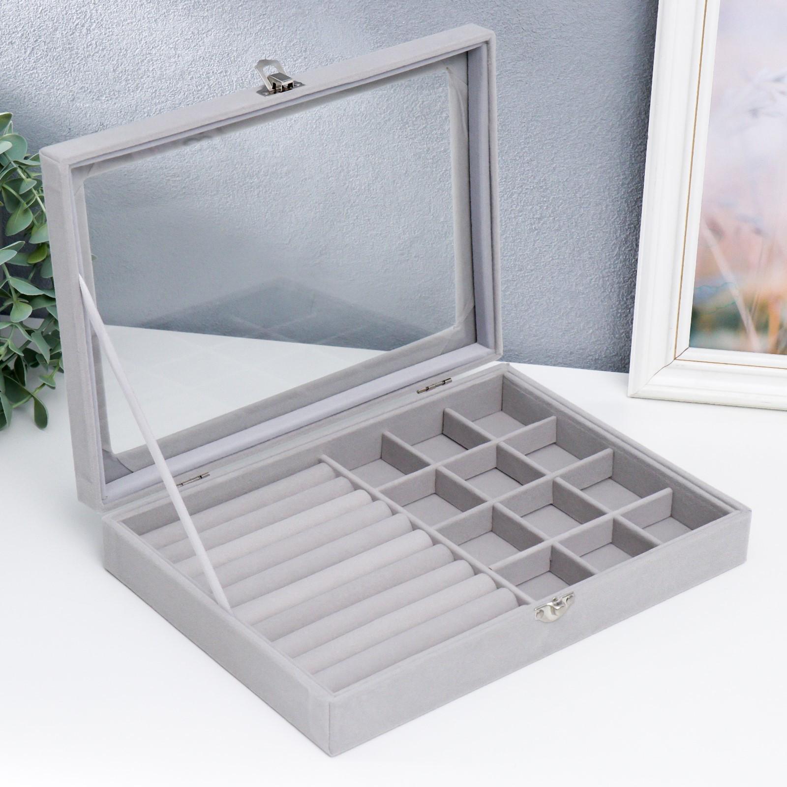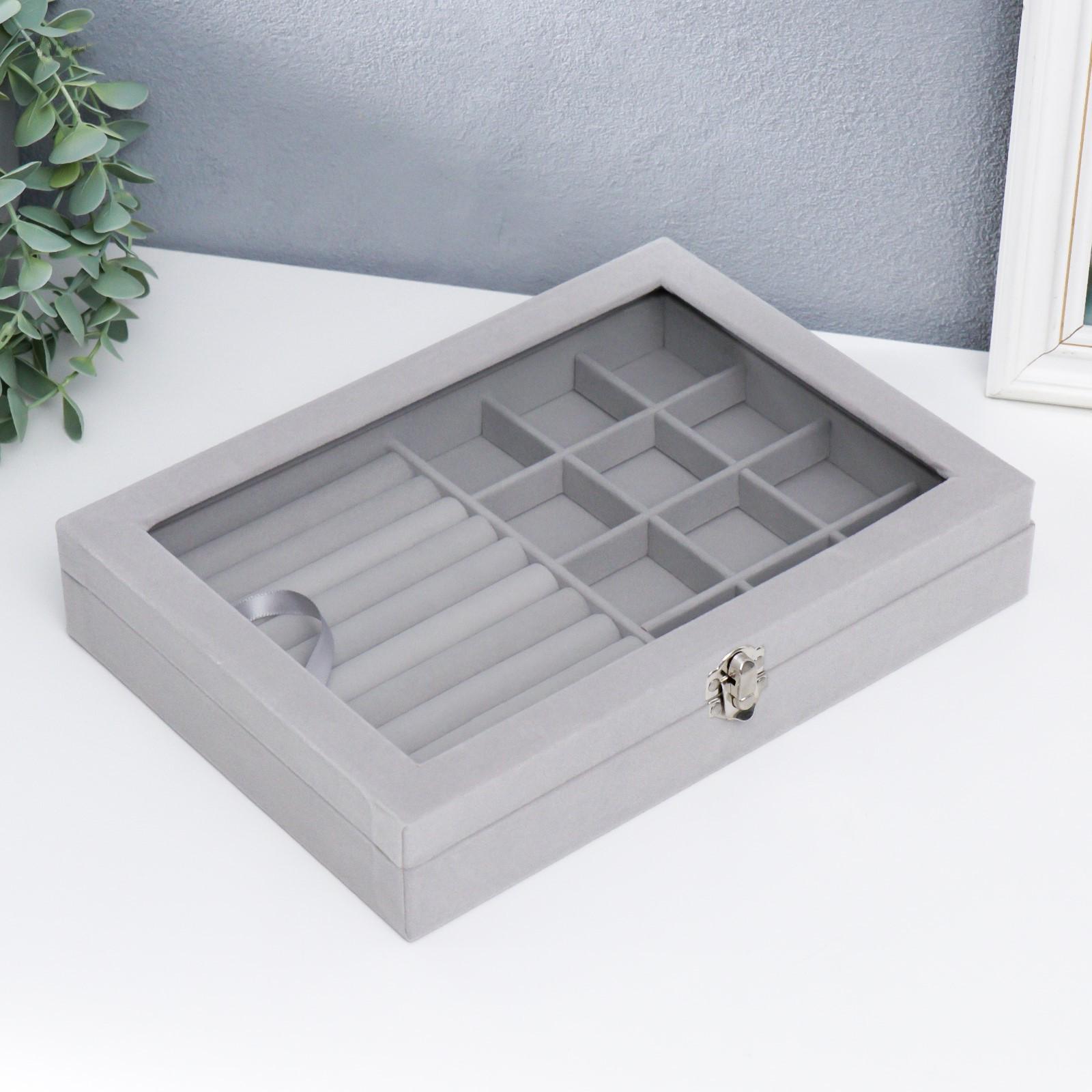 Шкатулка бархат для украшений "Серый туман" 5х20х28 см 7313538