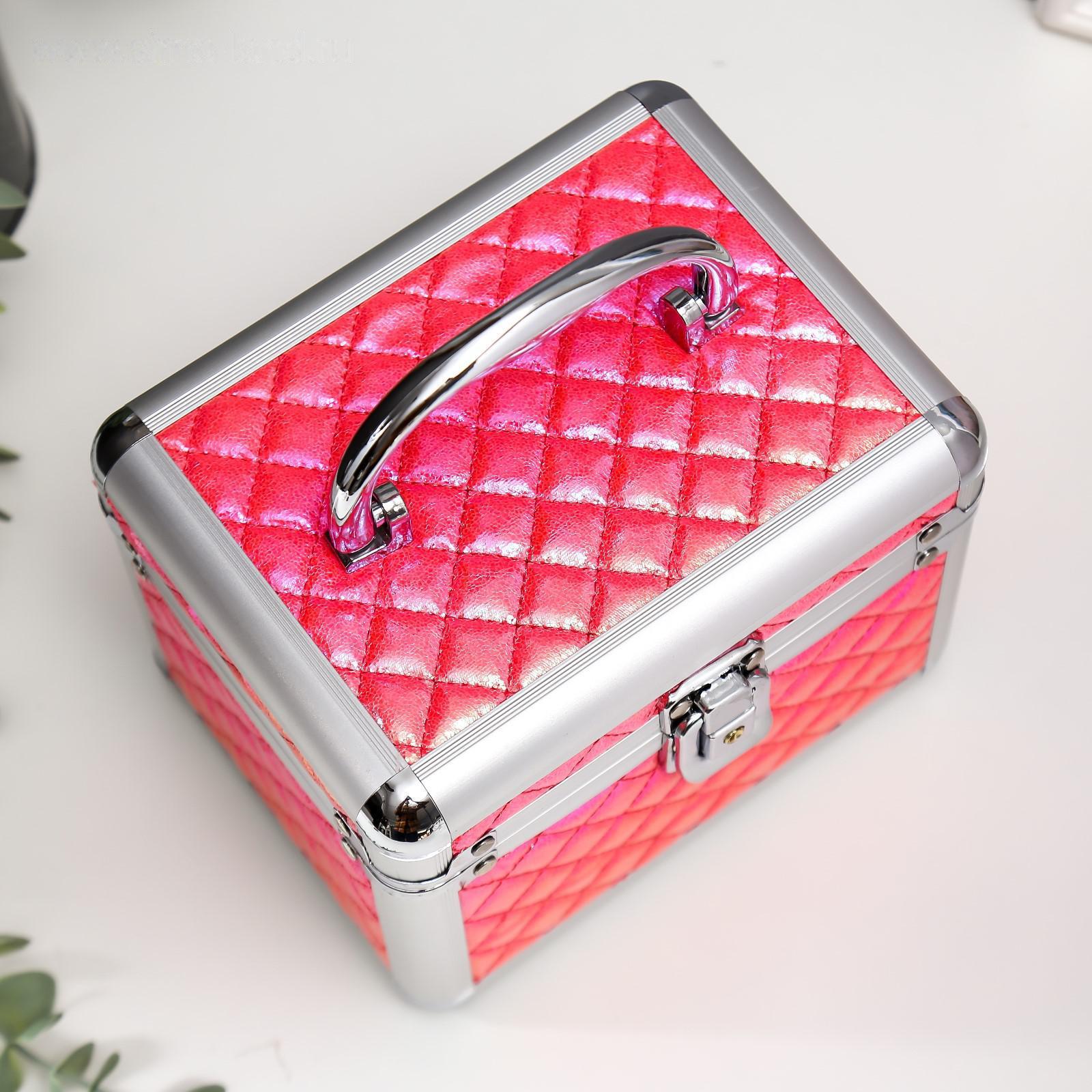 Шкатулка металлокаркас сундучок "Ромбы" ярко-розовый перламутр 13х16,7х12,8 см 5131805