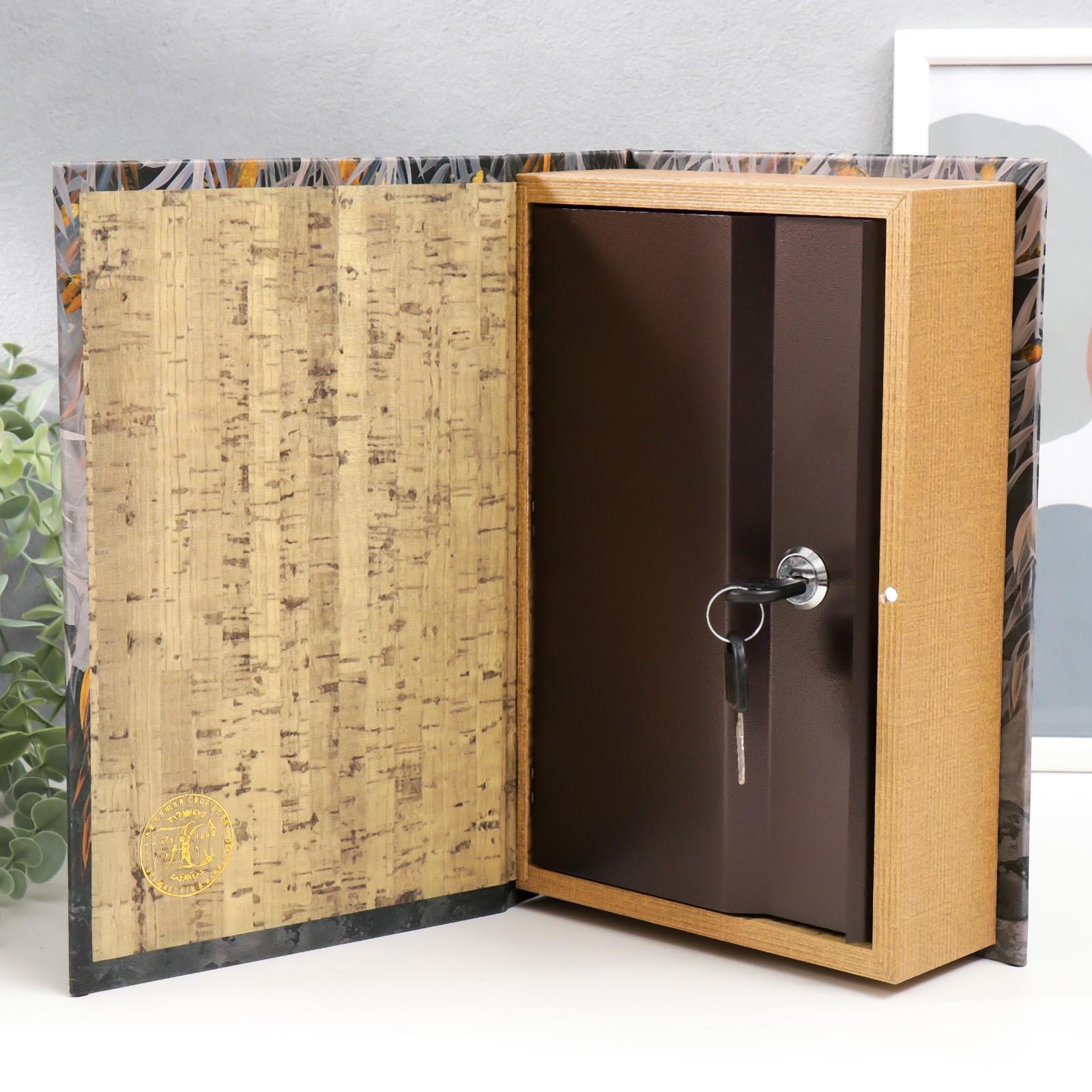 Сейф-книга дерево кожзам "Золотые бабочки в джунглях" 27х18х7 см 7570481