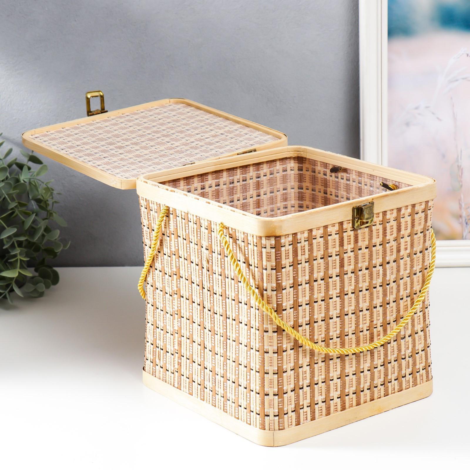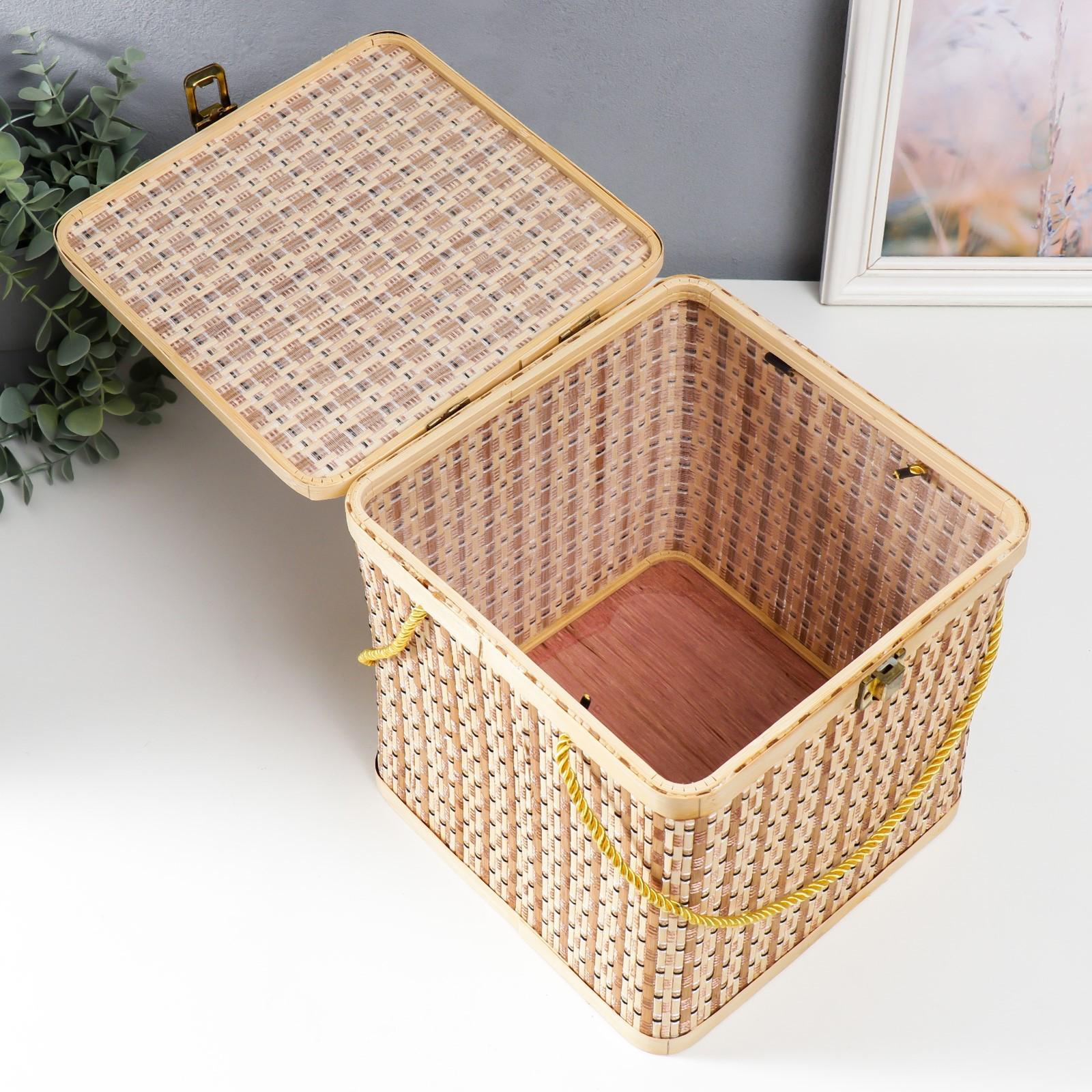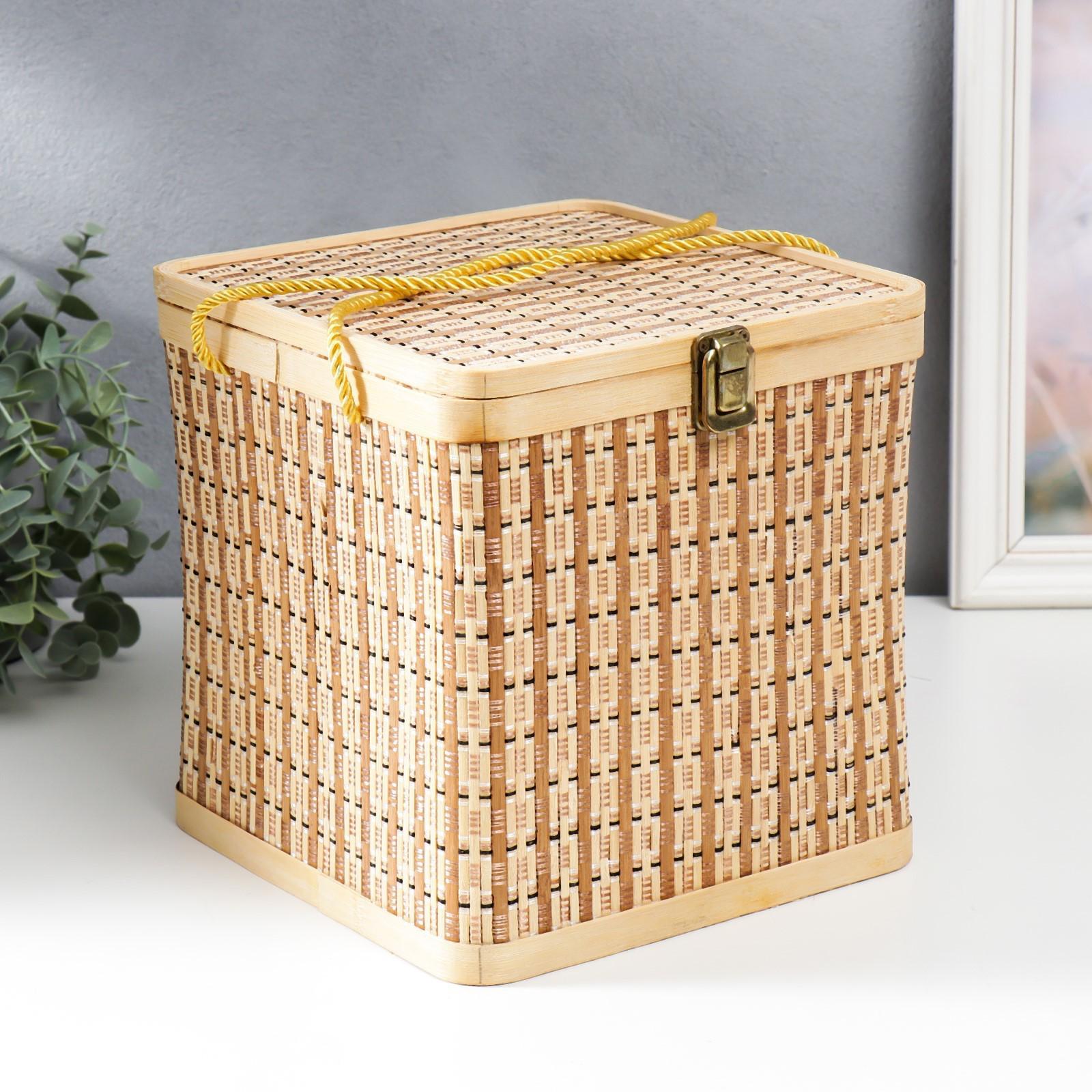 Шкатулка бамбук "Плетёнка" со шнуром 22х22х22 см 7615681