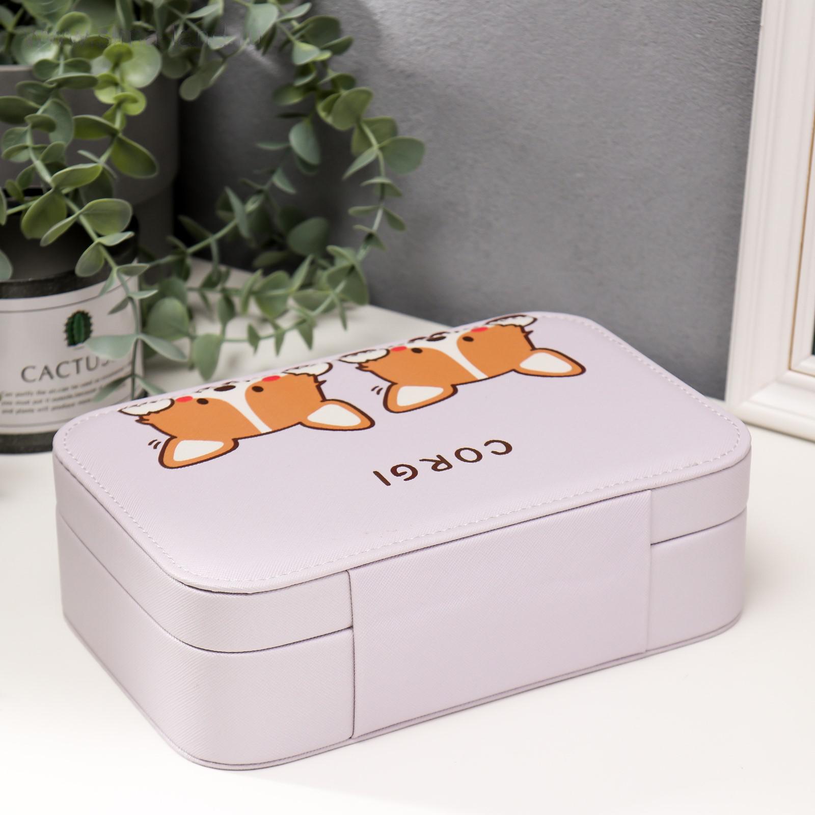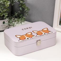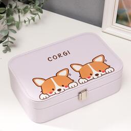 Шкатулка кожзам под часы 1 отделение и бижутерию "Щенята корги" 7х22,5х14,5 см 5043763