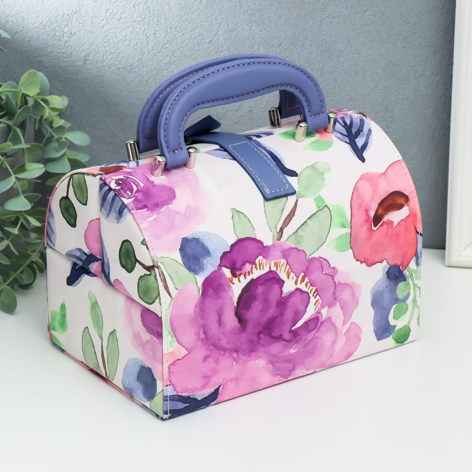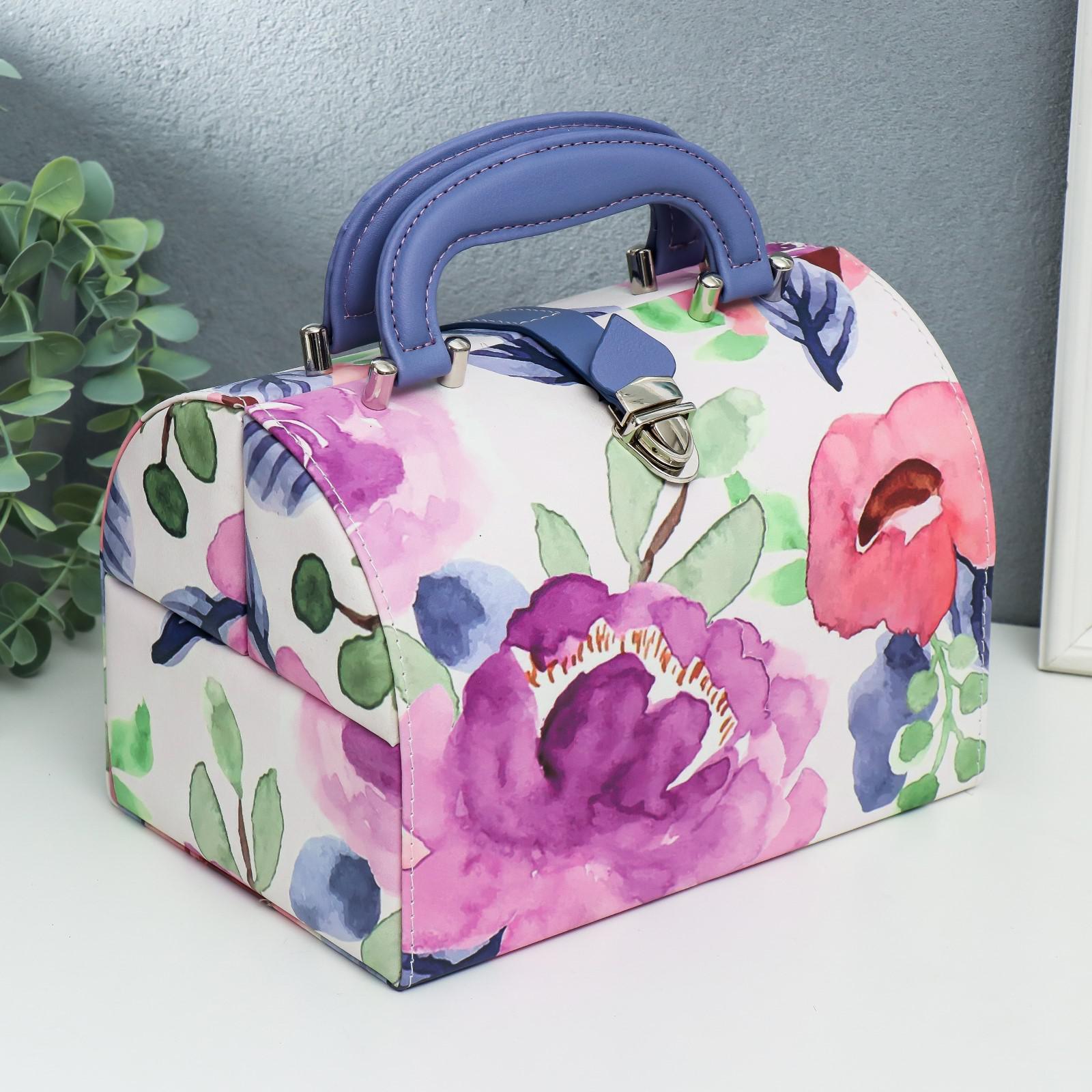 Шкатулка кожзам для украшений сундучок "Акварельные цветы" сиренево-фиолетовые 15х15х22,5 см 68937 6893792