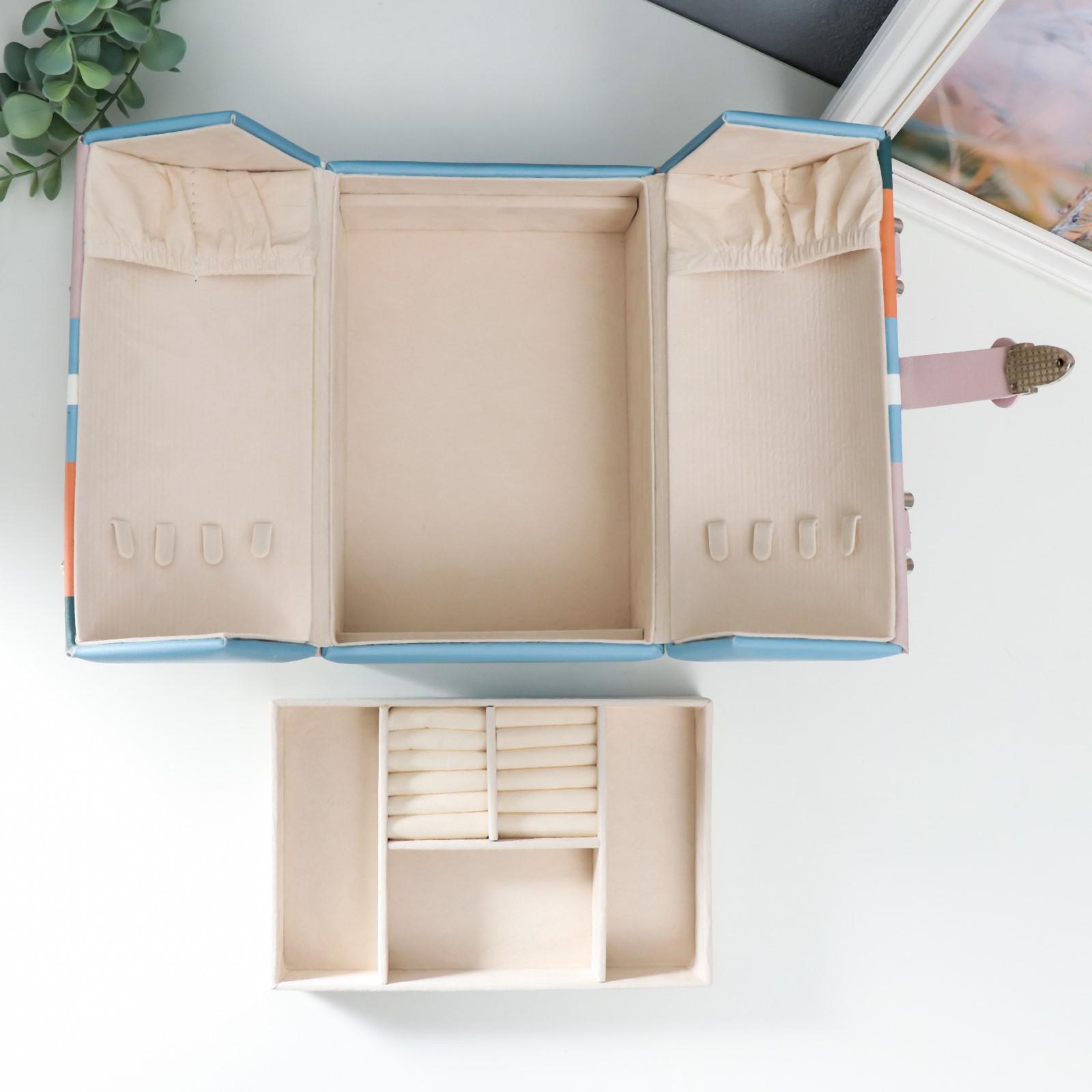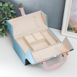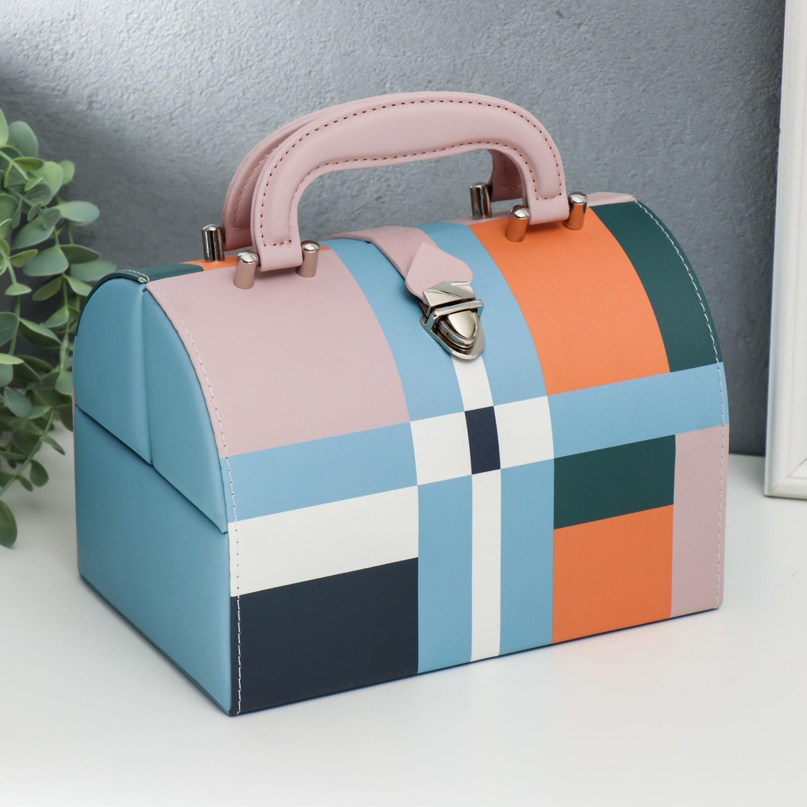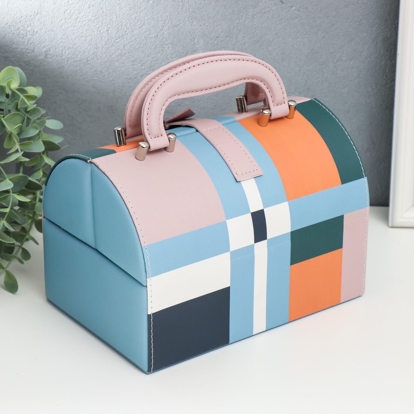 Шкатулка кожзам для украшений сундучок "Геометрия с голубым" 15х15х22,5 см 6893785