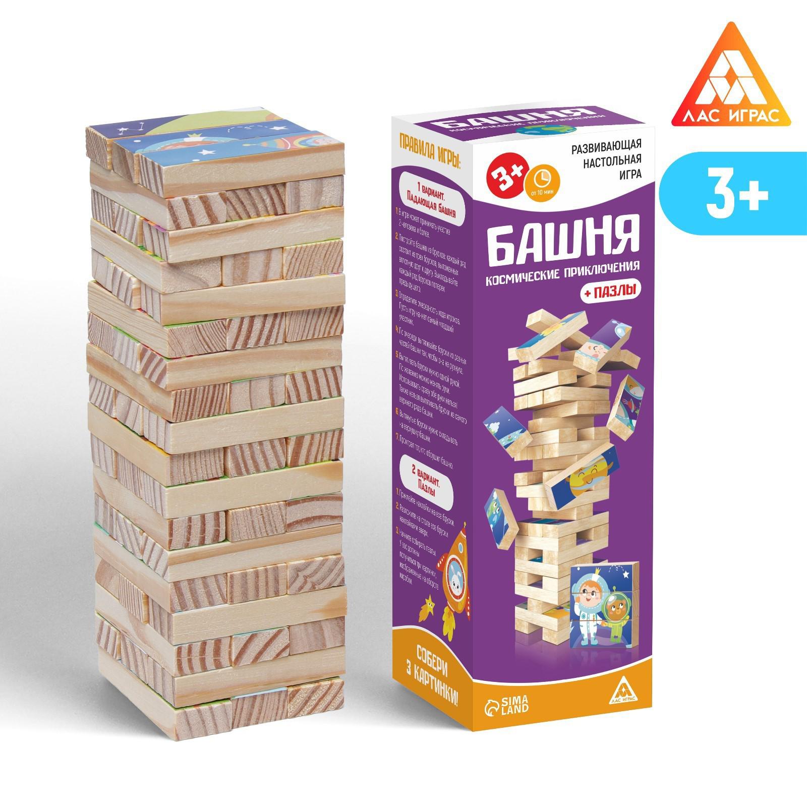 Развивающая игра «Падающая башня. Космические приключения + пазлы», 54 бруска 7024205