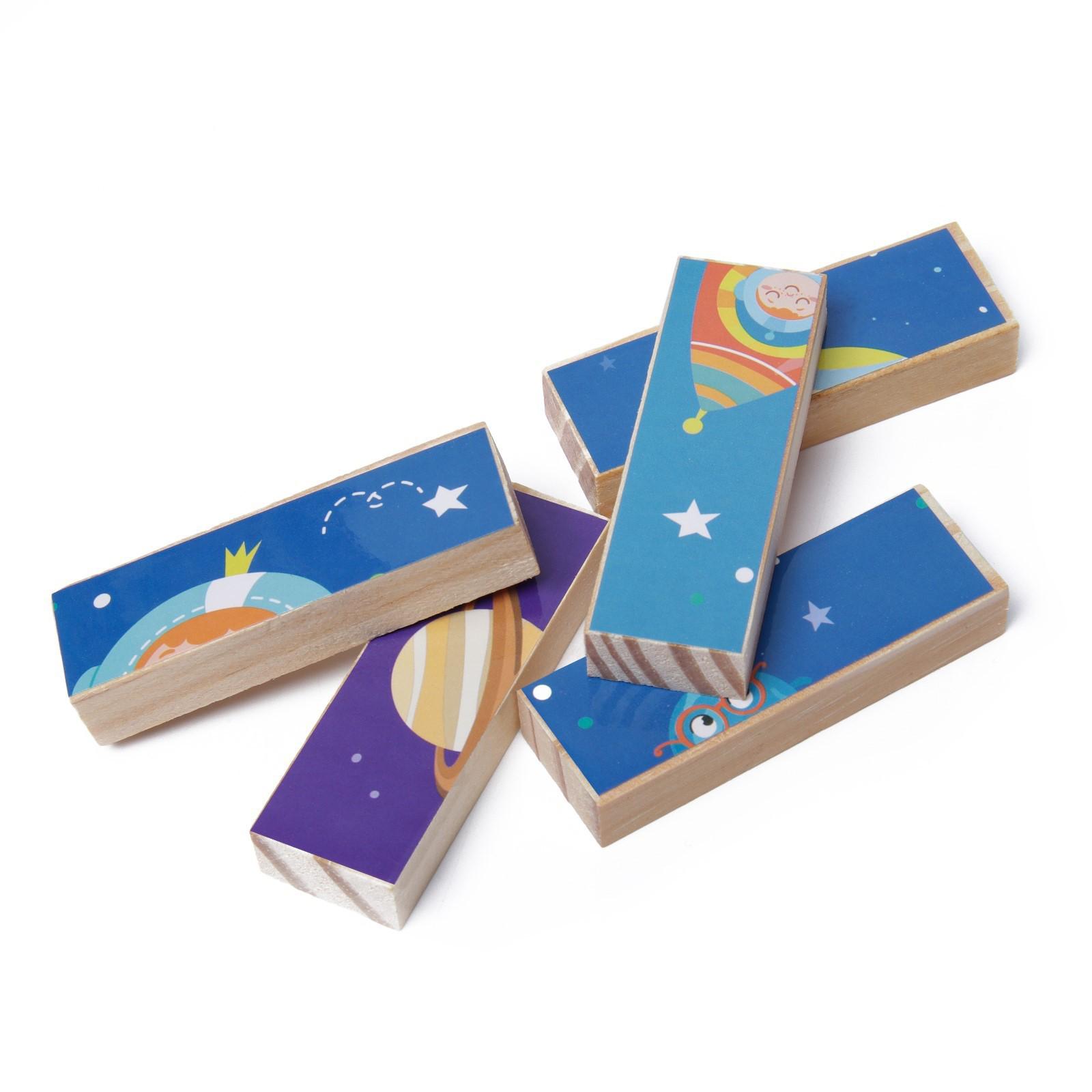 Приклейте наклейки на бруски. Всего вас ждёт 3 космических пазла. Какие именно картинки нужно собрать, показано на одной из сторон коробки. Выкладывайте брусочки перед собой и собирайте космическую мозаику. Попробуйте собрать их все!