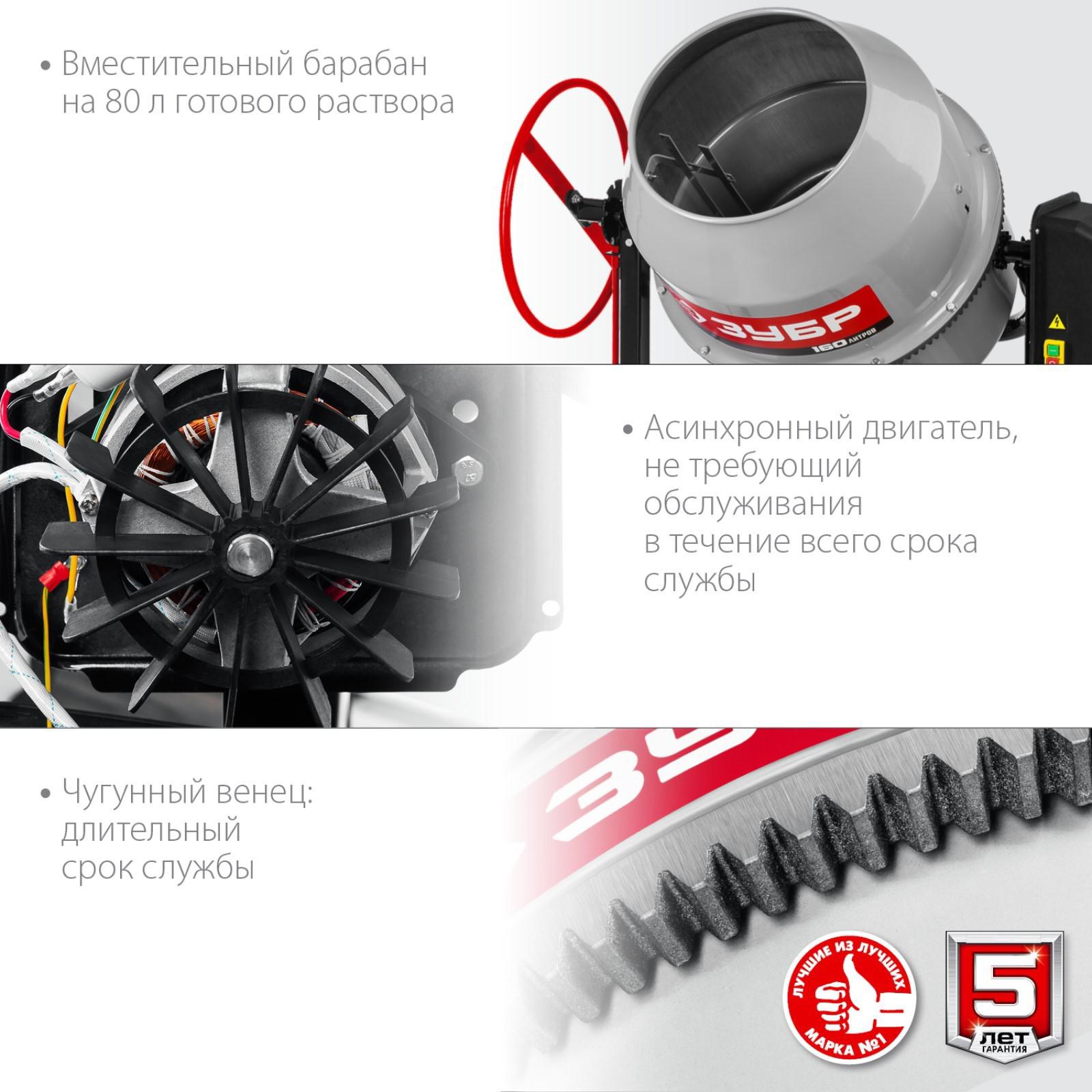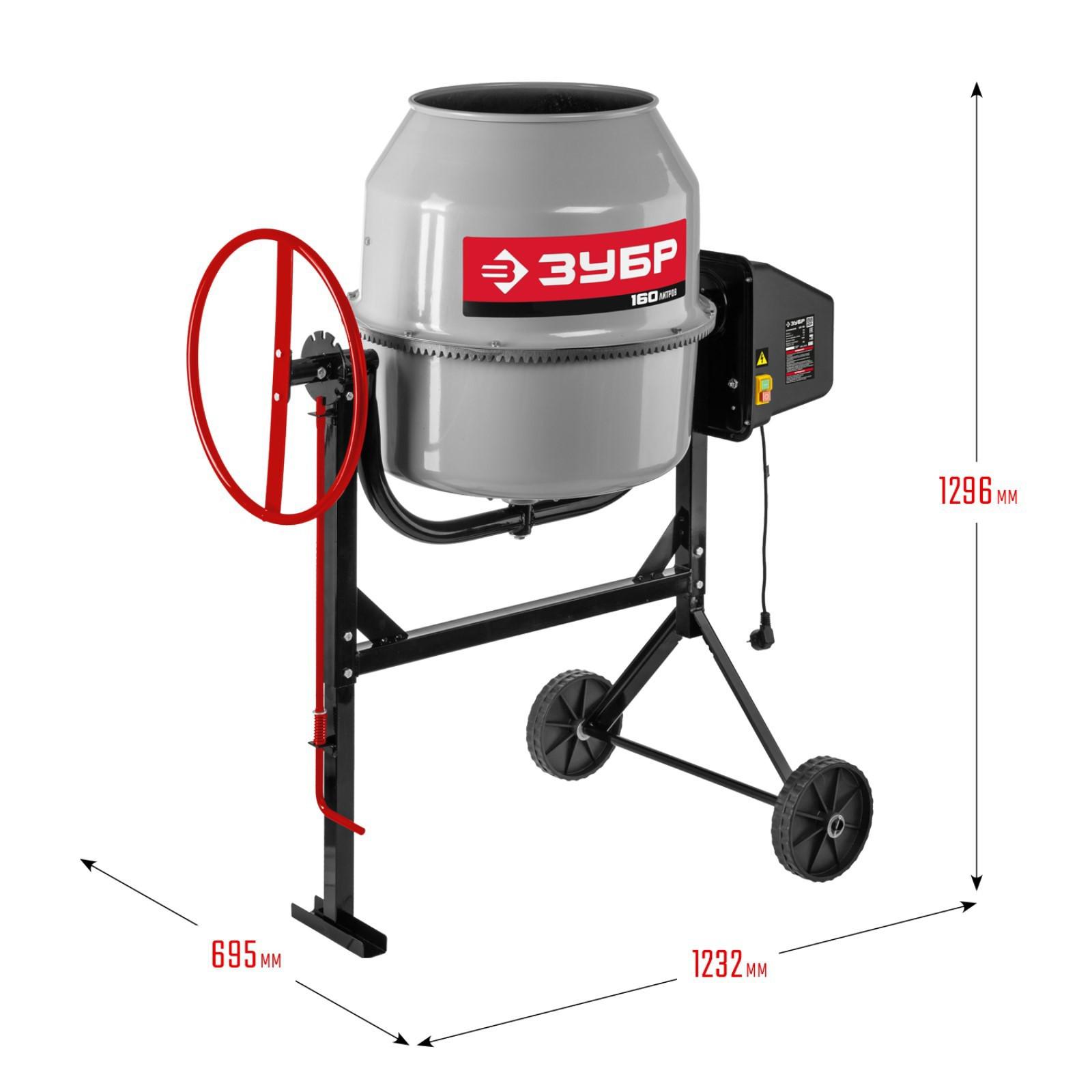 Бетономешалка ЗУБР БМЧ-160, 700 Вт, 160 л, 27 об/мин, 80 л готовой смеси, чугунный венец 7806364