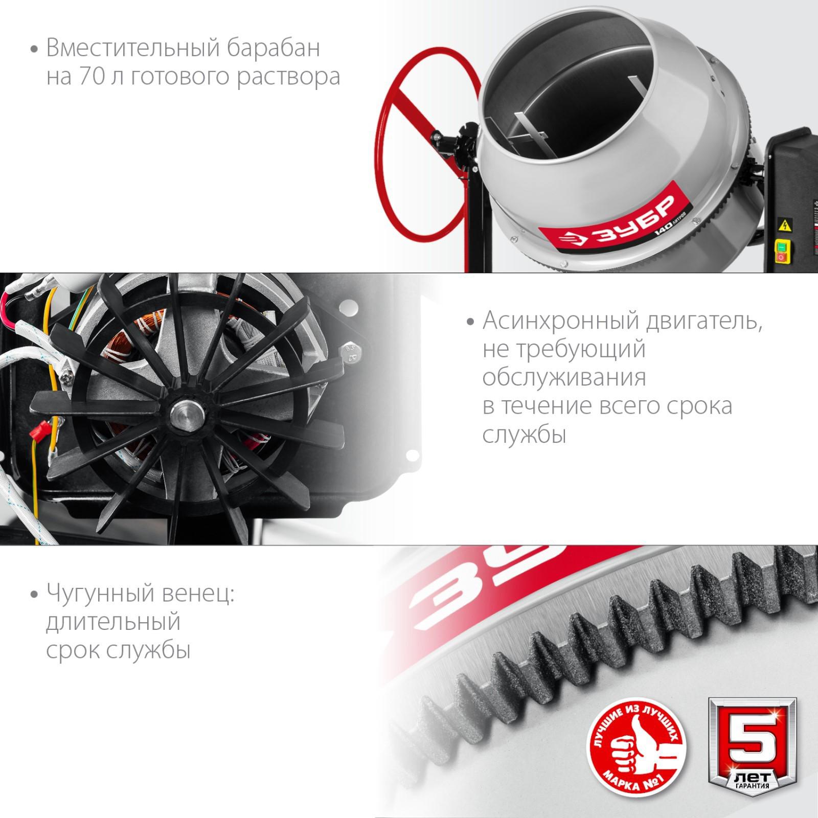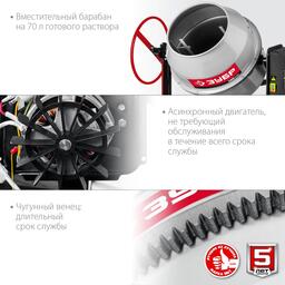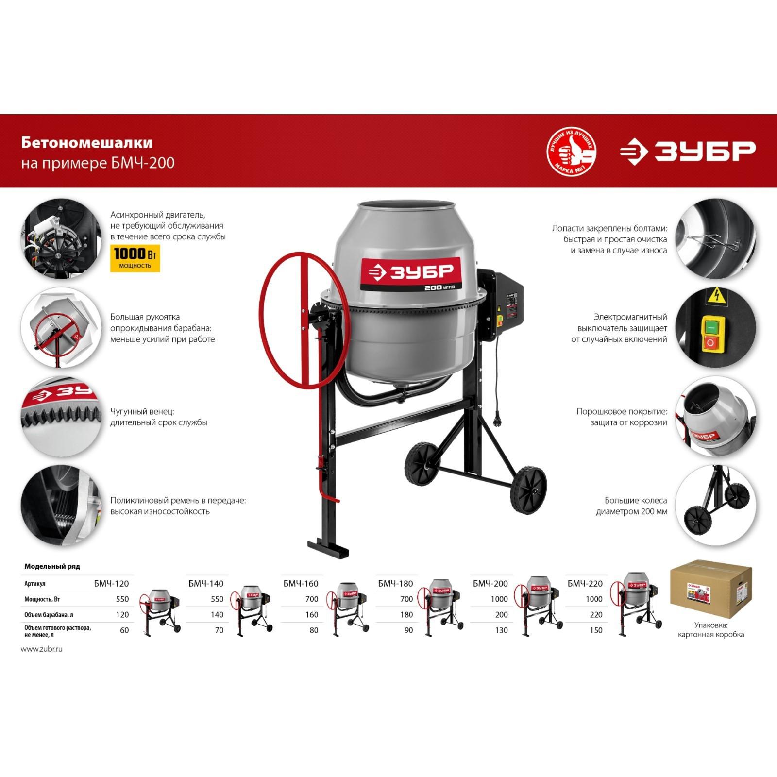 Бетономешалка ЗУБР БМЧ-140, 220 В, 550 Вт, 27 об/мин, барабан 140 л, чугунный венец 9110663