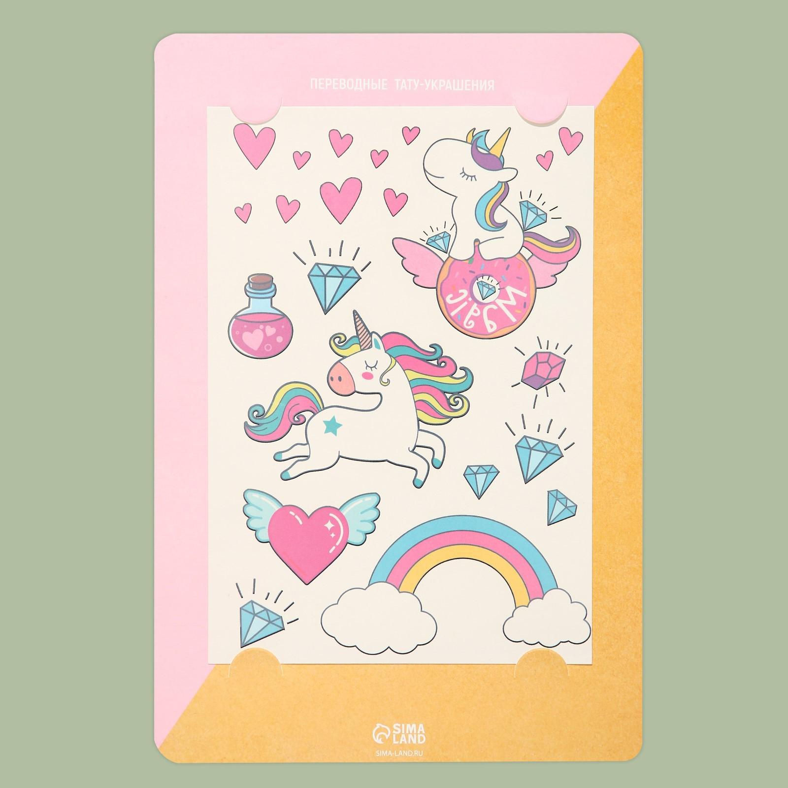 Наклейки‒тату Rainbow Unicorns, 14 × 21 см 4123180