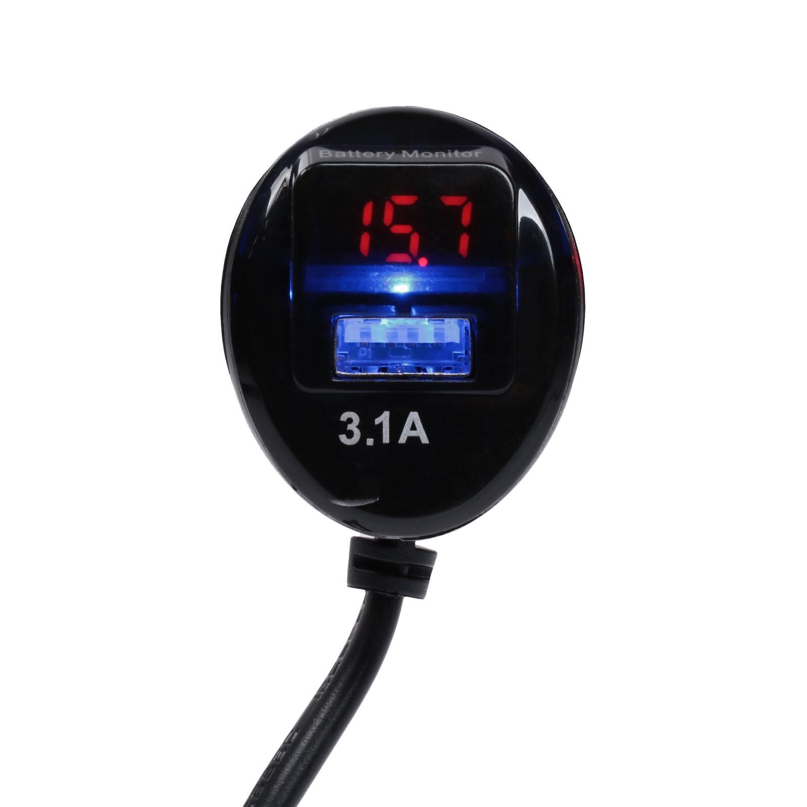 Разветвитель прикуривателя с вольтметром, 2 гнезда, USB 3.1 А, провод 70 см 4774420