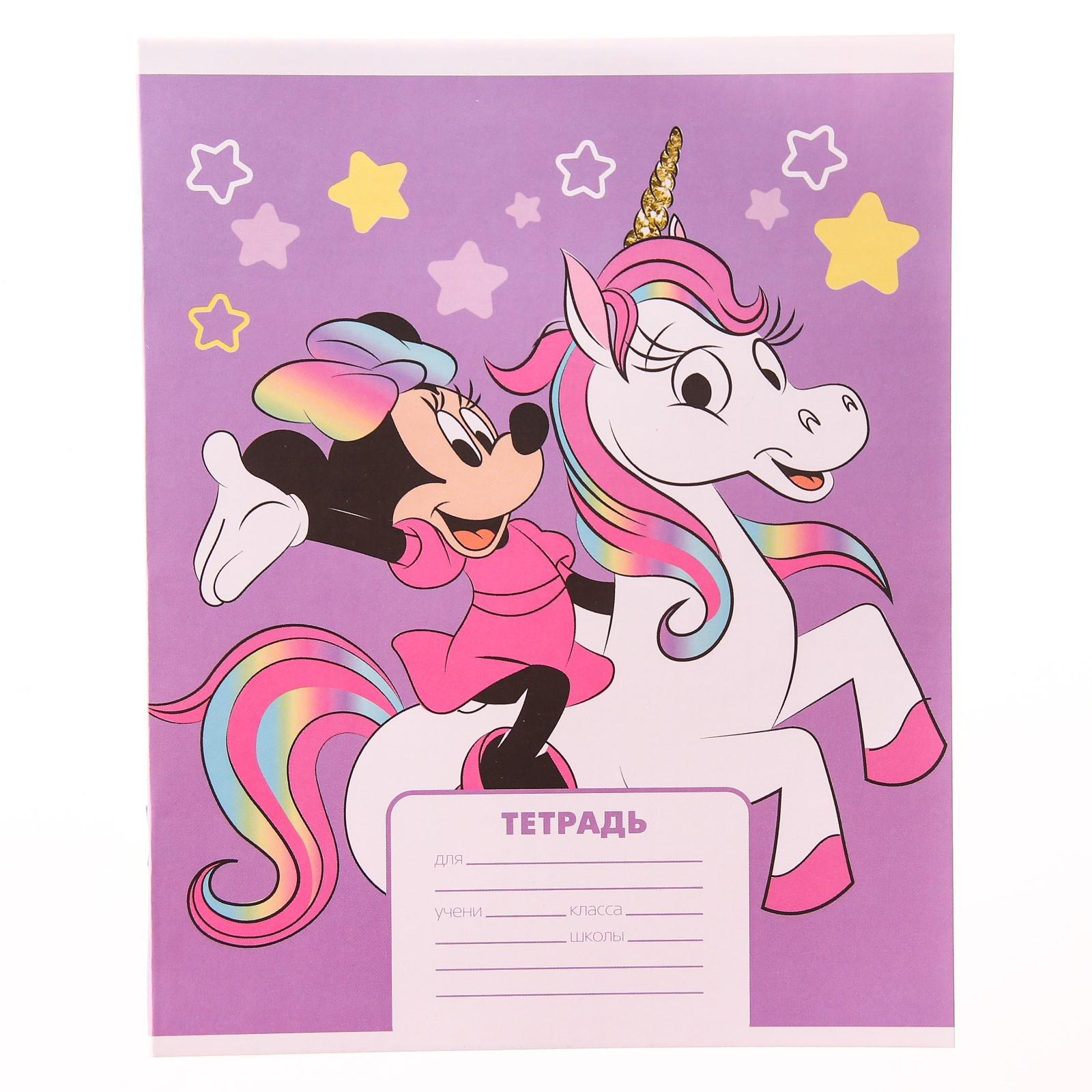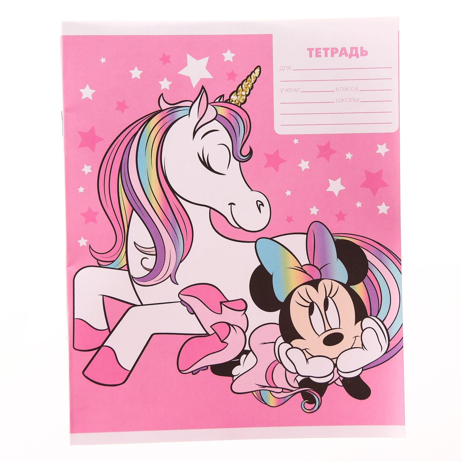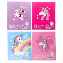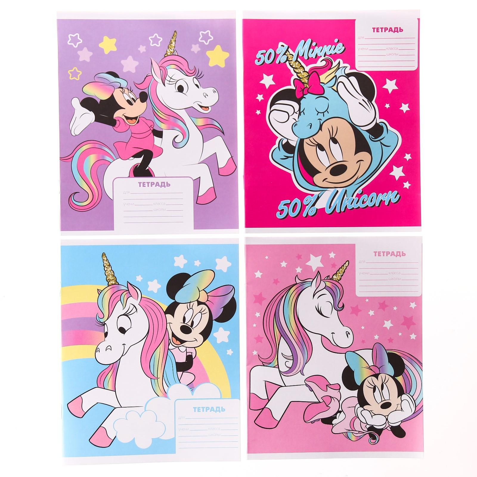 Тетрадь 12 листов, клетка, "Единорог", 4 вида МИКС, Минни Маус 7572365