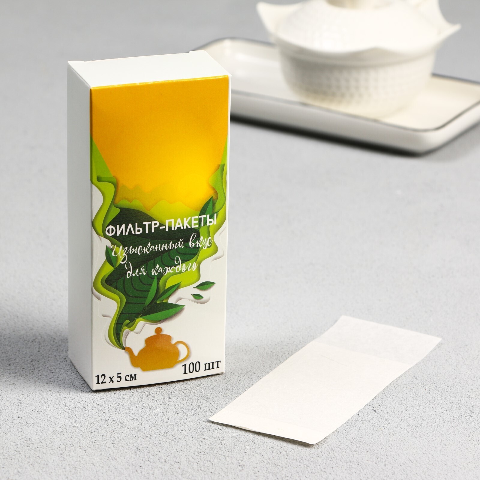 Фильтр-пакеты для заваривания чая, для чайника, 100 шт., 5 х 12 см 7150590