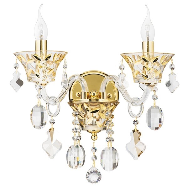 Высота min-max (см): 42 Ширина (см): 40 Глубина (см): 25 Вес (кг): 3,1 Кол-во ламп: 2xE14 Мощность max (W): 60 Цвет основания/цвет стекла или абажура: Gold Clear/Cristal Clear;