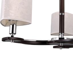 ЛОРЕНЗА. ЛОРЕНЗА - с претензией на оригинальность. Основанием рожков служит деревянная, замысловатой формы фигура с хромированными деталями для крепления абажуров. Абажуры из ткани далеки от классических, так как имеют треугольные очертания.