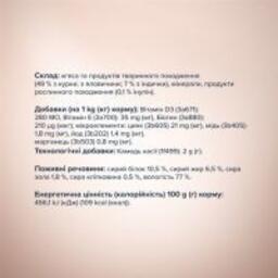 Енергетична цінність (калорійність) 100 г корму : 456,1 кДж (109 ккал).