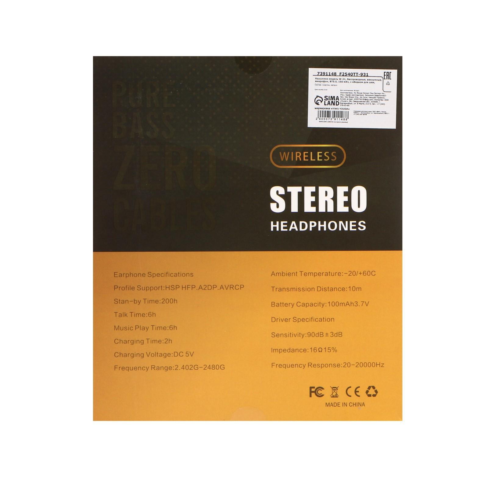 Наушники W-21, беспроводные, вакуумные, микрофон, BT5.0, 150 мАч, с ободком для шеи, черные 7391148