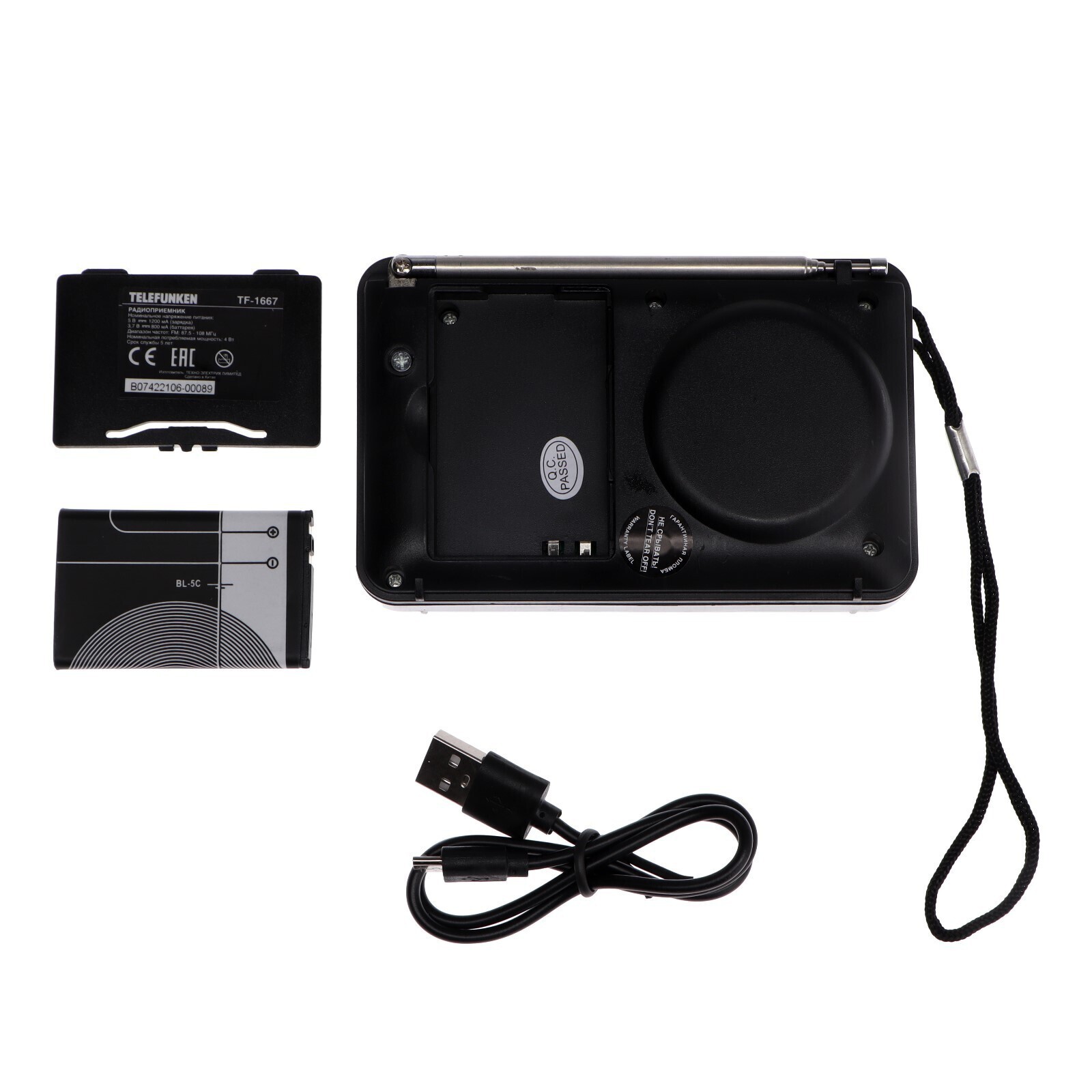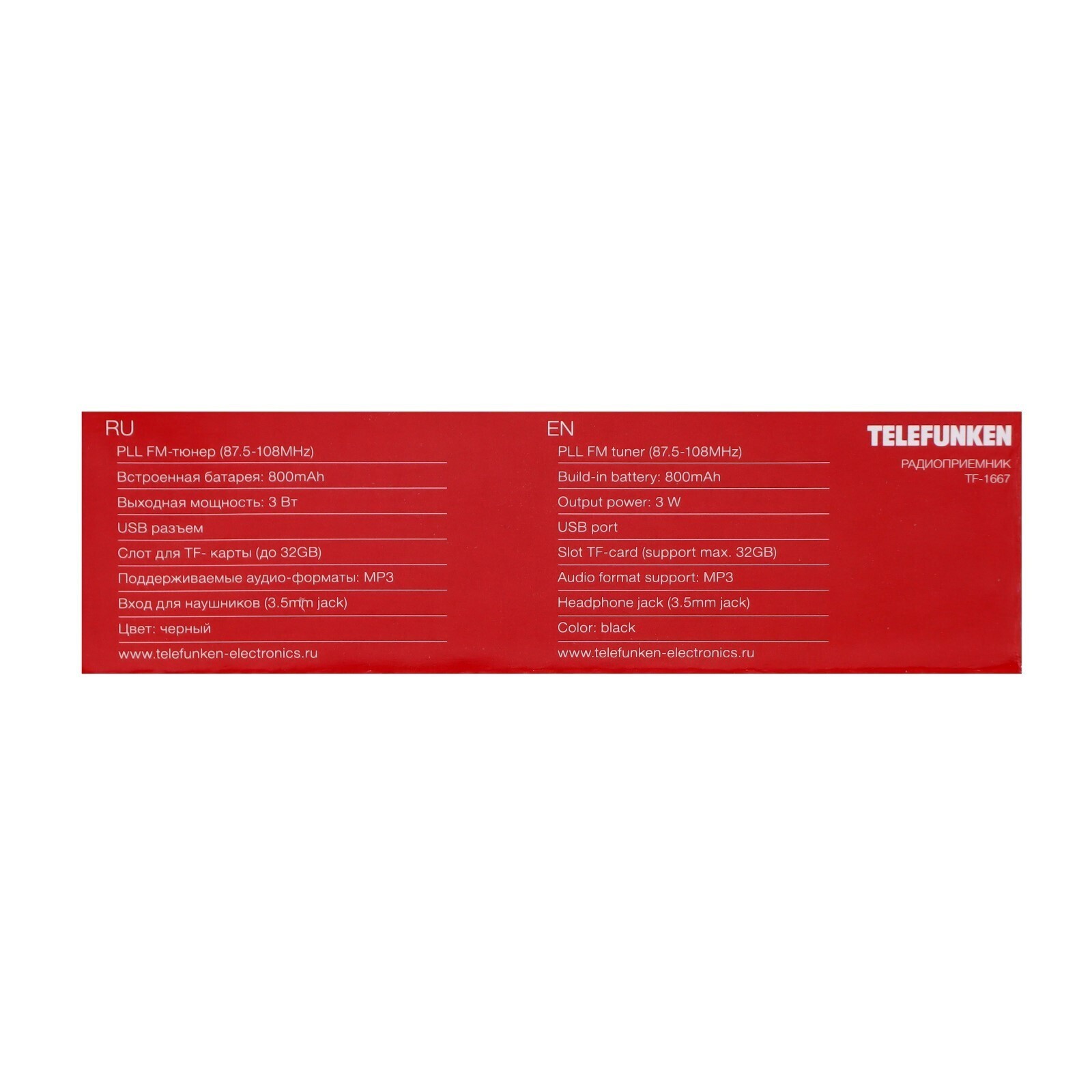 Радиоприемник Telefunken TF-1667, FM+ 87.5 МГц - 108 МГц, MP3, USB, microSD,800 мАч, чёрный 9212952