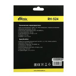 Наушники Ritmix RH-524, полноразмерные, 99 дБ, 32 Ом, 3.5 мм, 2 м, черные 4424514