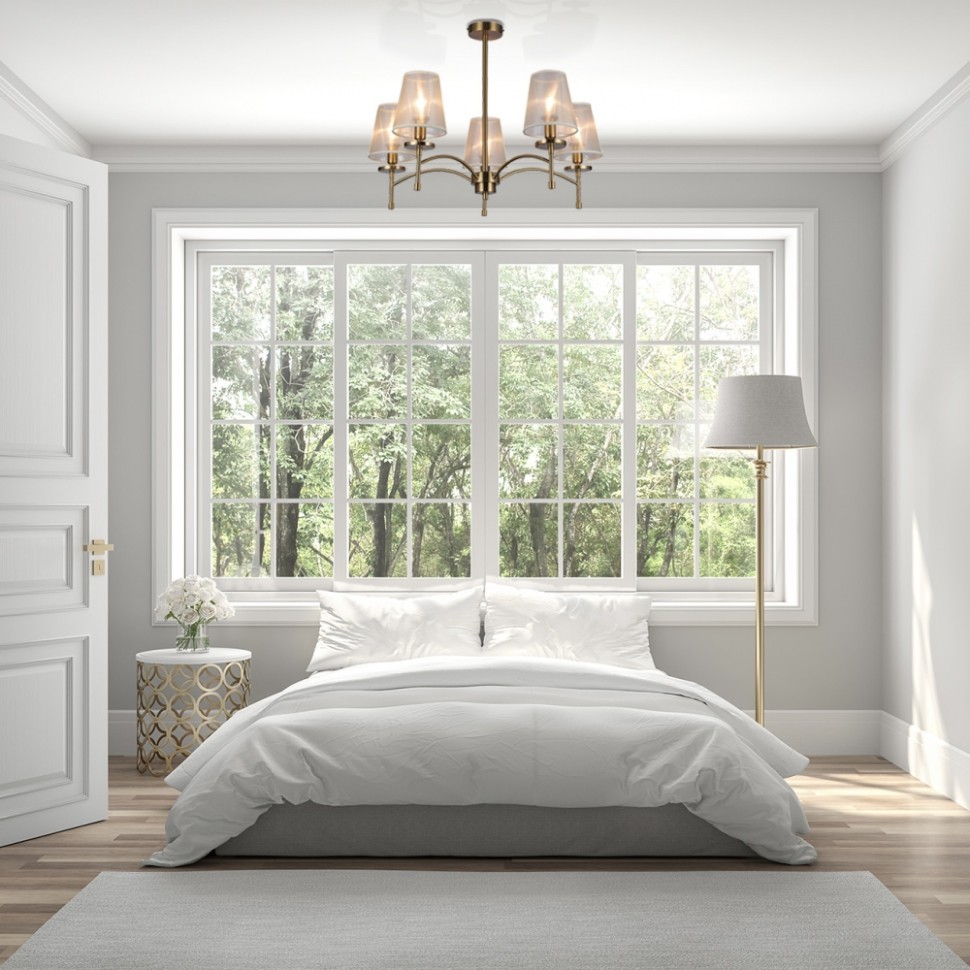 Светильник на штанге 5x40Вт E14, металл/ткань, золото/белый плафон