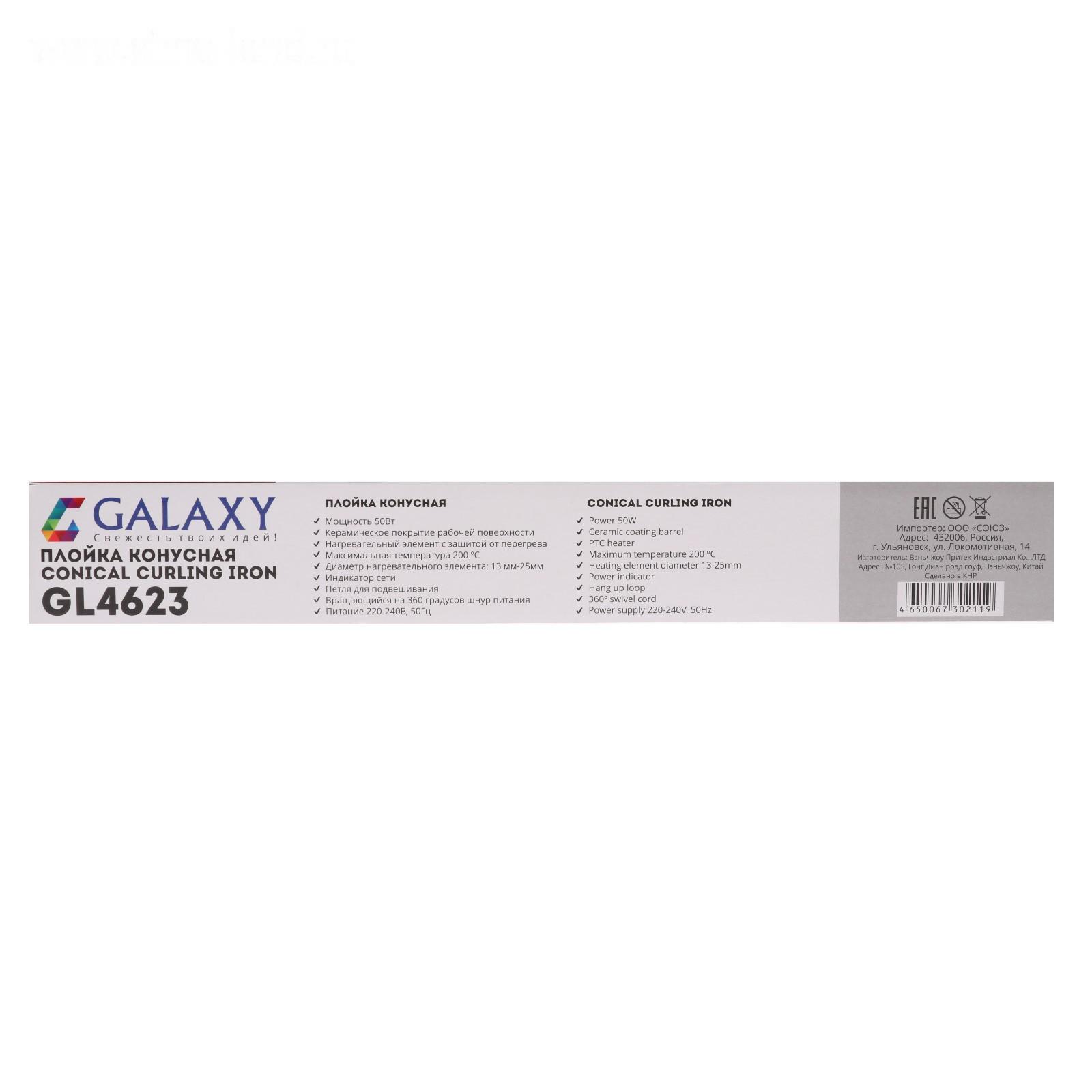 Плойка Galaxy GL 4623, 50 Вт, конусная, керамическое покрытие, d=25 мм, 200°С, красная 1547014