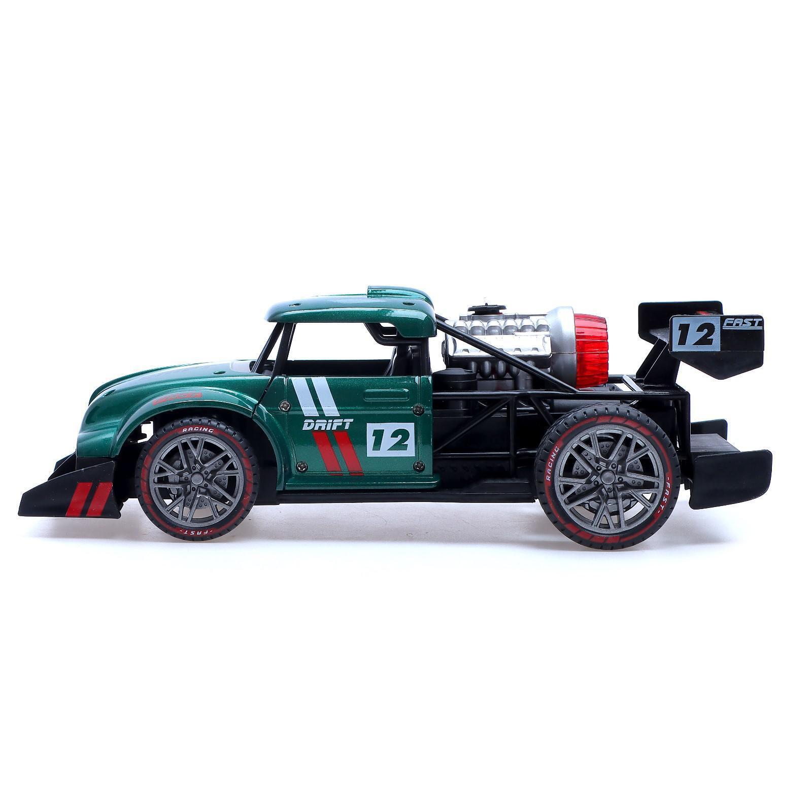 Машина радиоуправляемая «Хот-род», эффект дыма, свет и звук, работает от аккумулятора, цвет зелёный 6918414