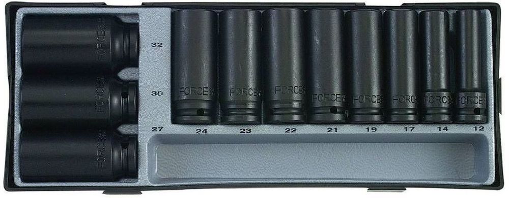 Набор, включающий в себя 11 6-гранных (HEX) ударных головок L = 85 мм: 12; 14; 17; 19; 21; 22; 23; 24; 27; 30; 32 мм