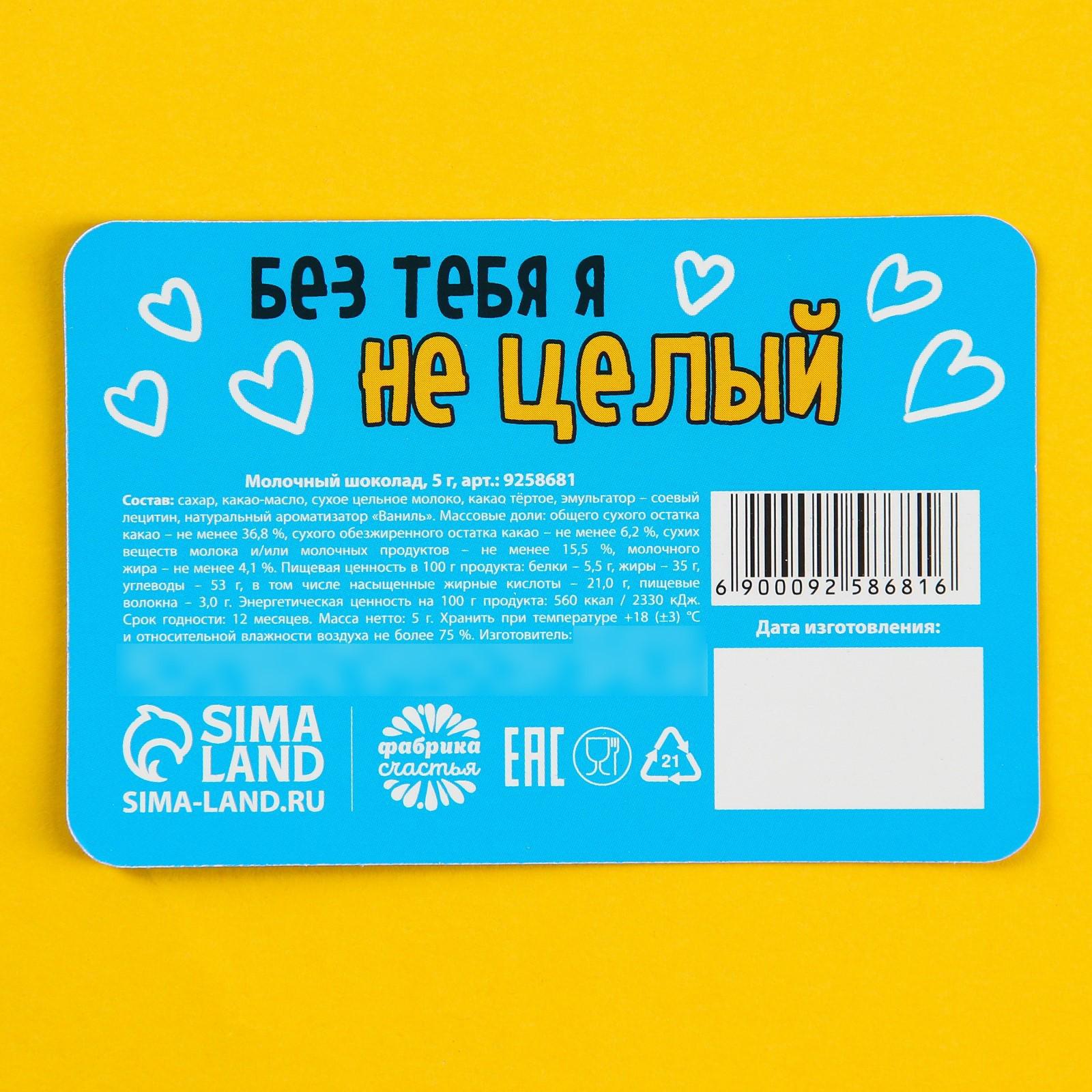 Молочный шоколад «Люблю тебя», 5 г. х 1 шт. на подложке 9258681