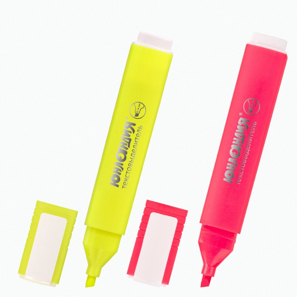 Набор текстовыделителей ЮНЛАНДИЯ 2 шт., ЖЕЛТЫЙ/РОЗОВЫЙ, "COLORSTAR", линия 1-4 мм, 151707